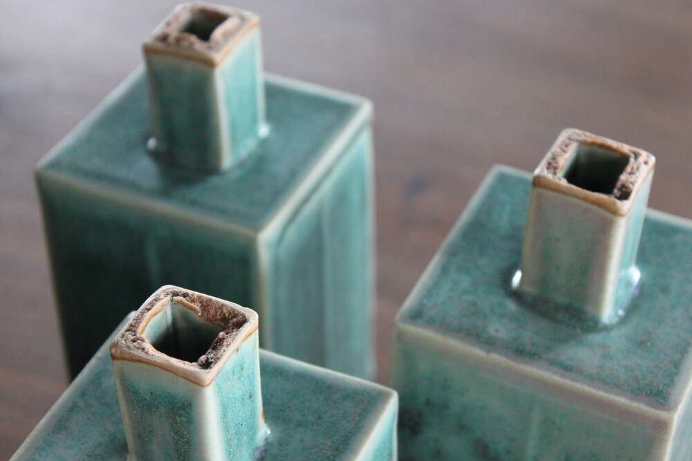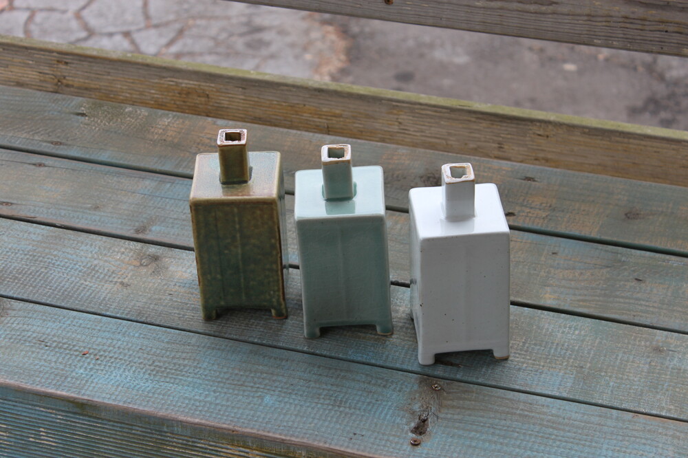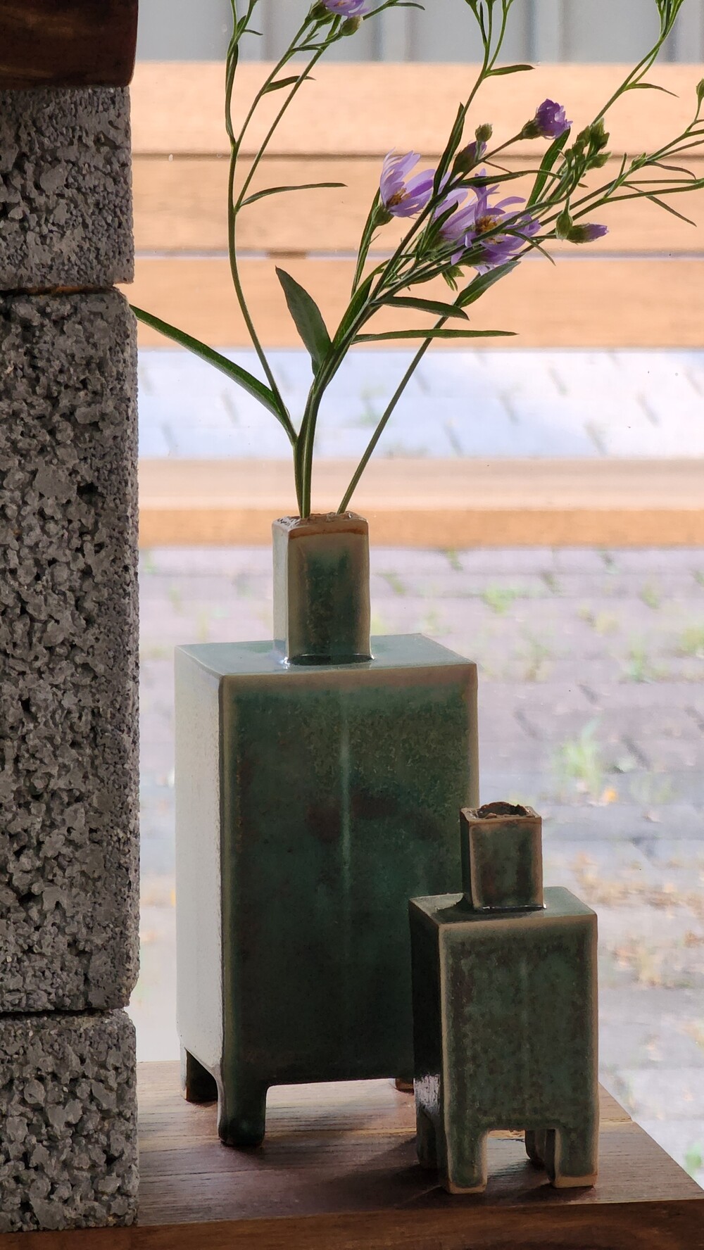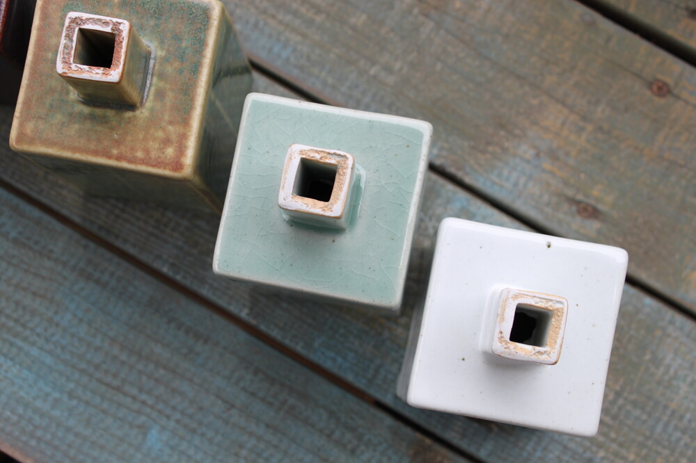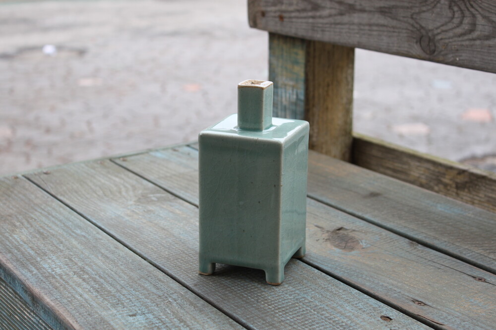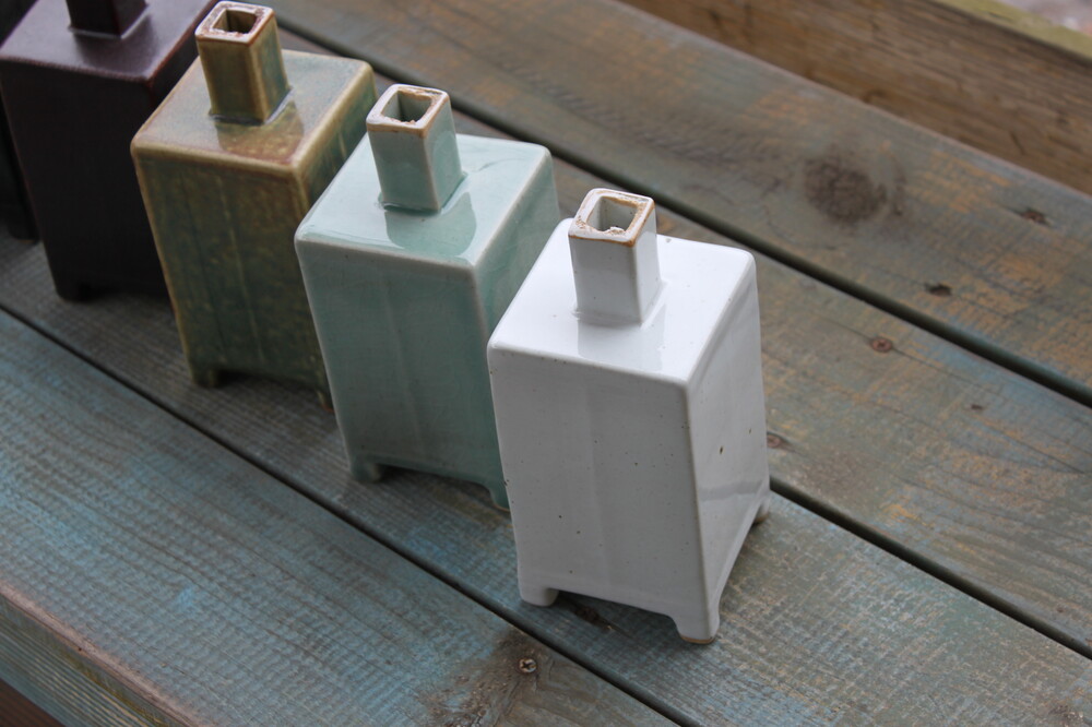 단정한 사각 형태와 우직한 존재감이 돋보이는 수공예 화병입니다.