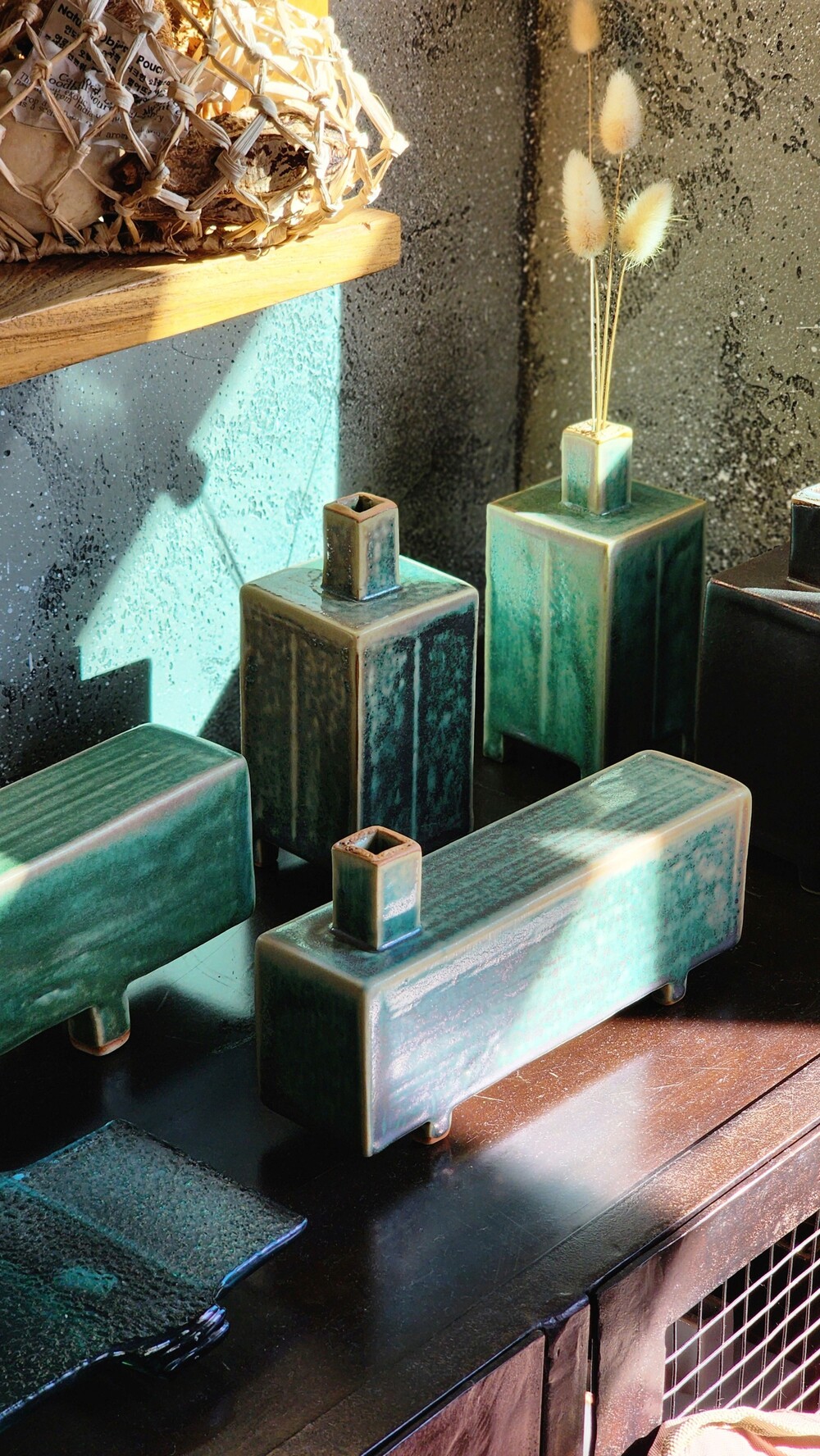그린색상은 유약의 변화가 풍부하여, 베이지-그린-브라운 색상이 자연스럽게 오고갑니다.