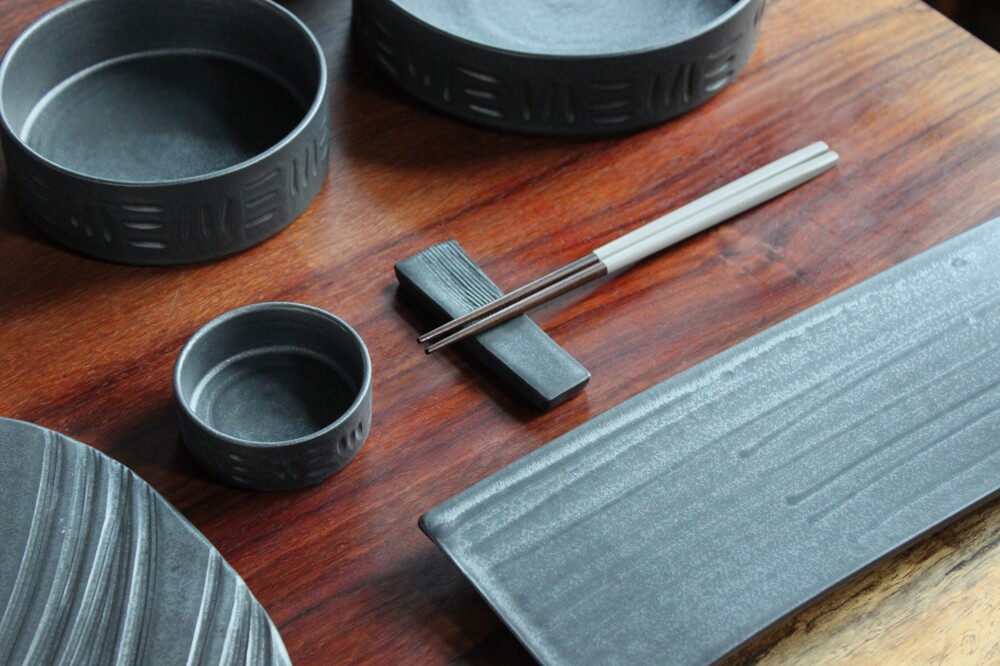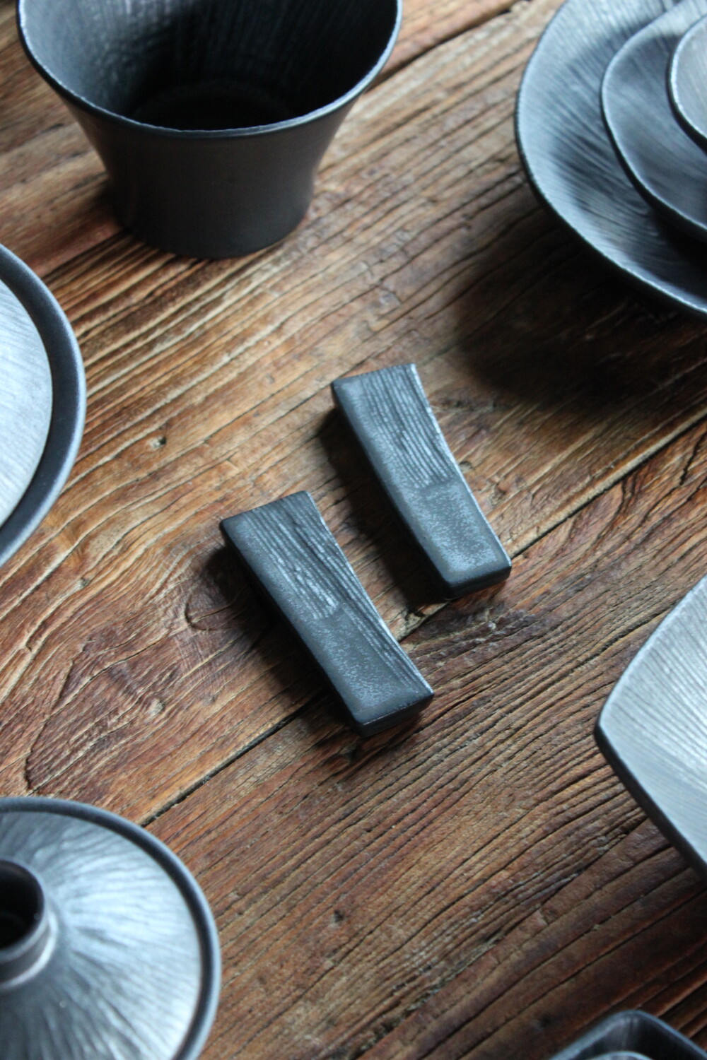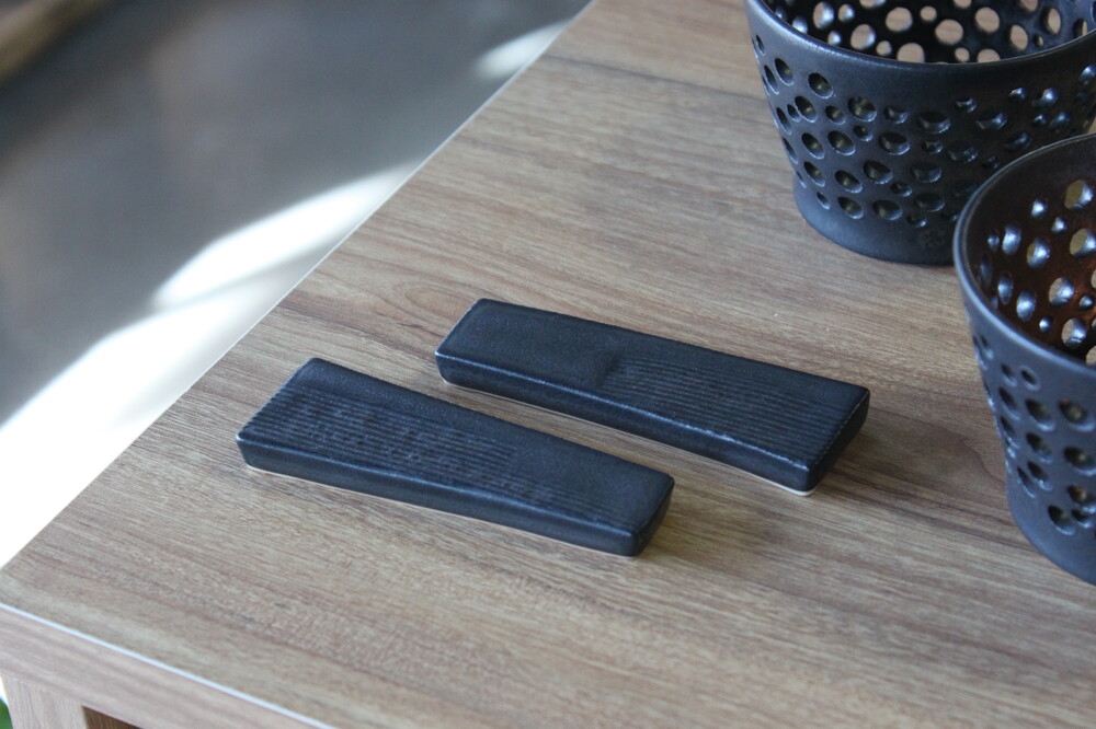 차분한 무드를 더해주는 무광 흑유 수저받침입니다.