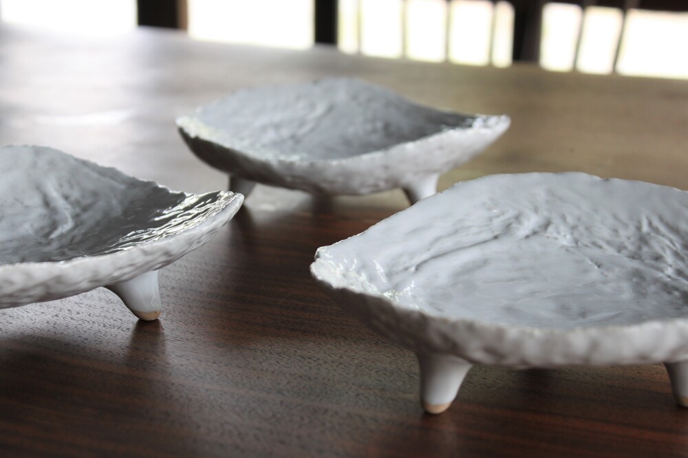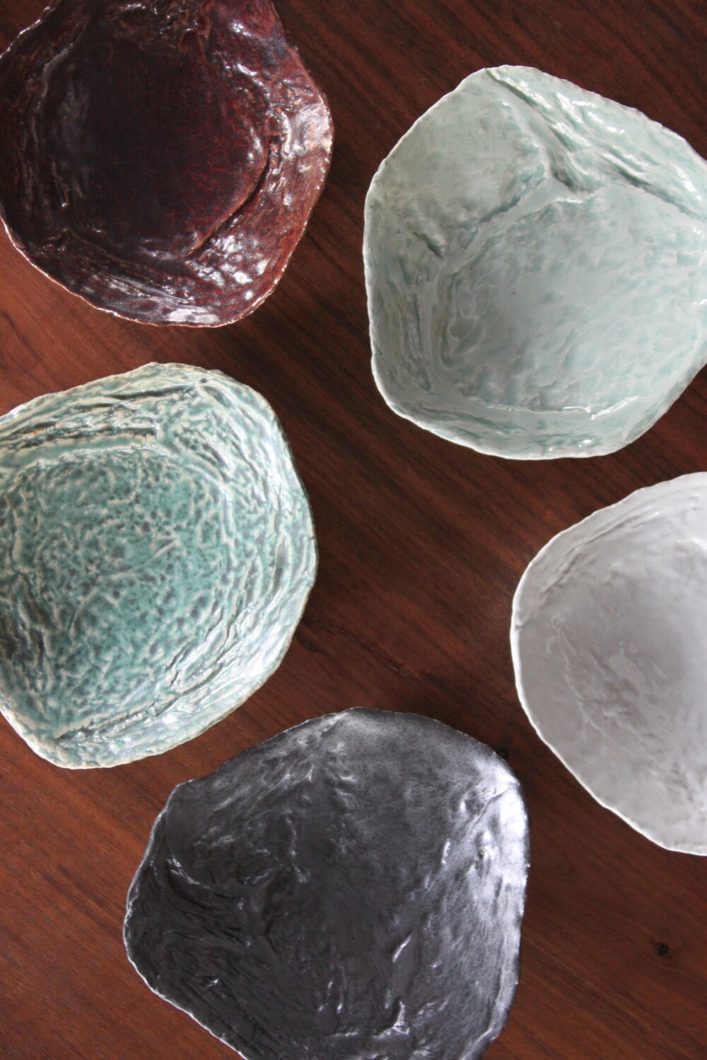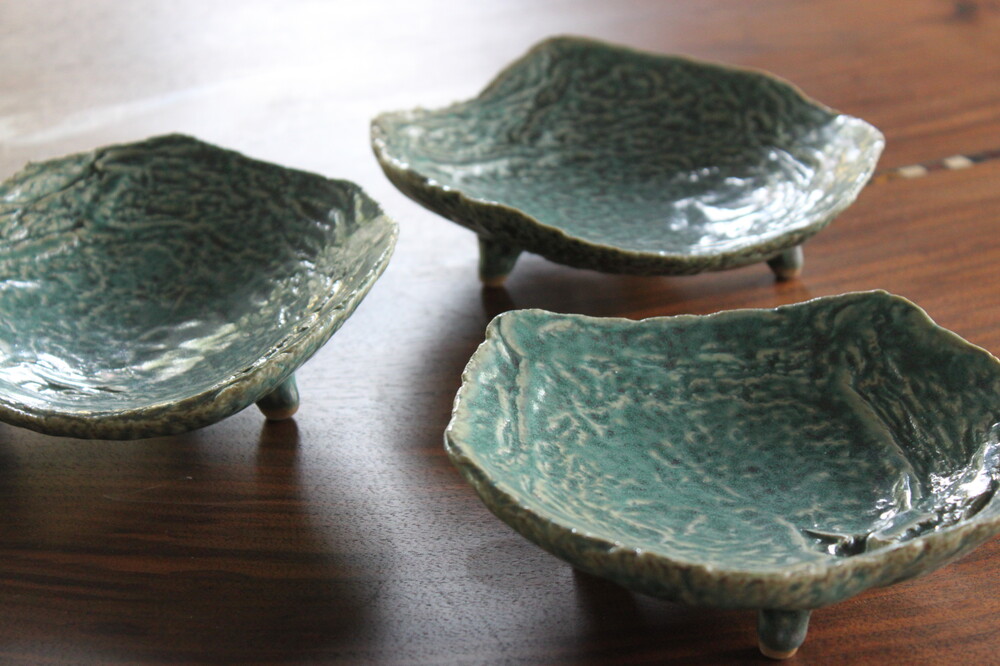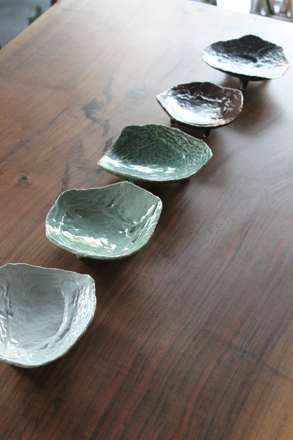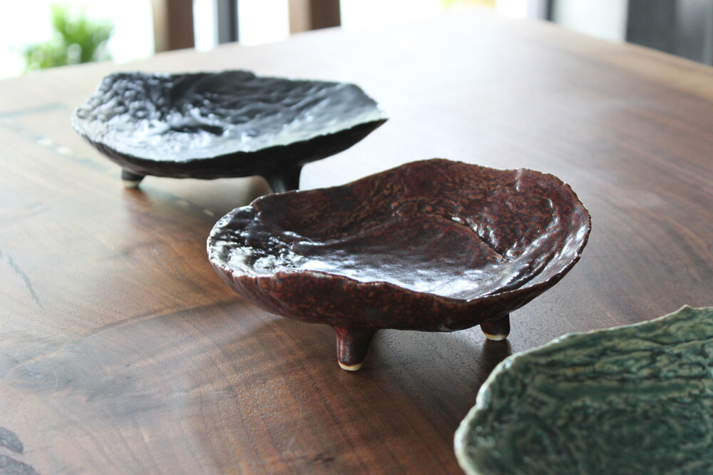 그릇마다 질감의 모양과 쉐입이 모두 다른 굽접시 입니다