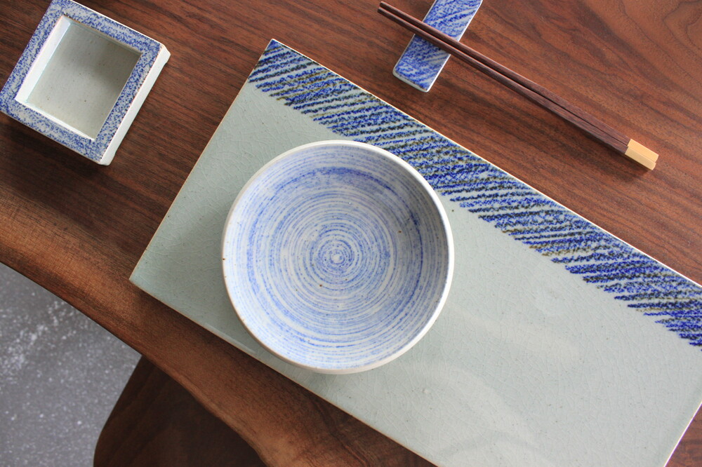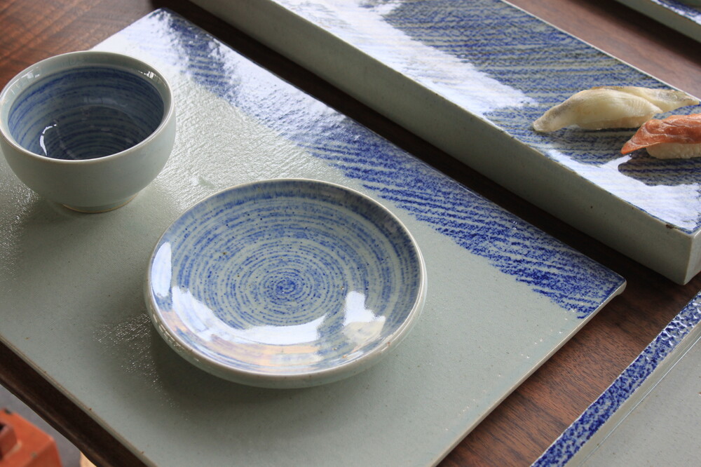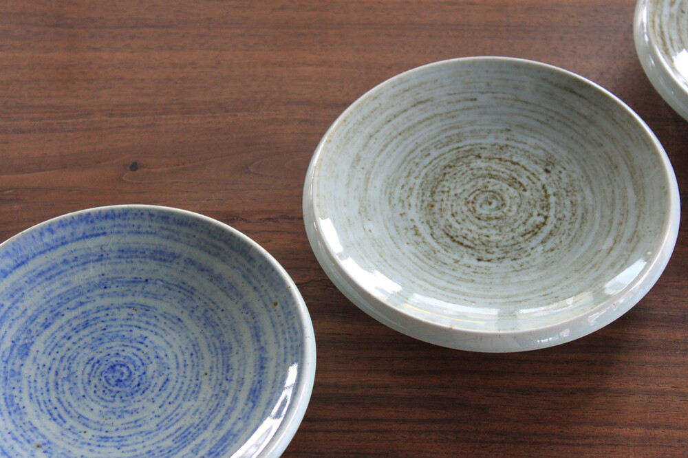 손으로 채색하는 작업으로, 접시마다 선의 흐름과 색의 농담이 일률적이지 않습니다