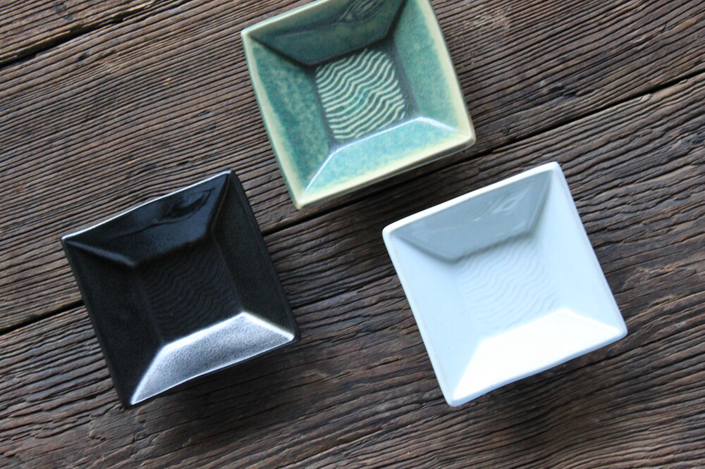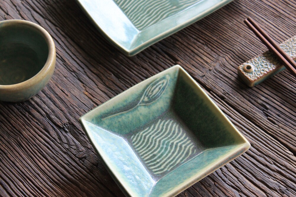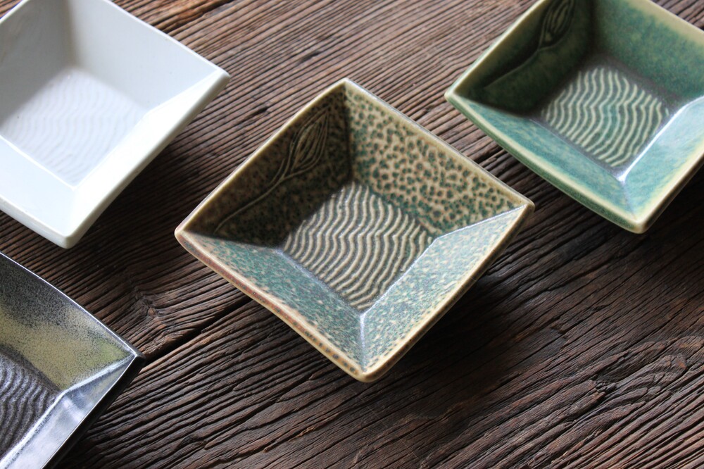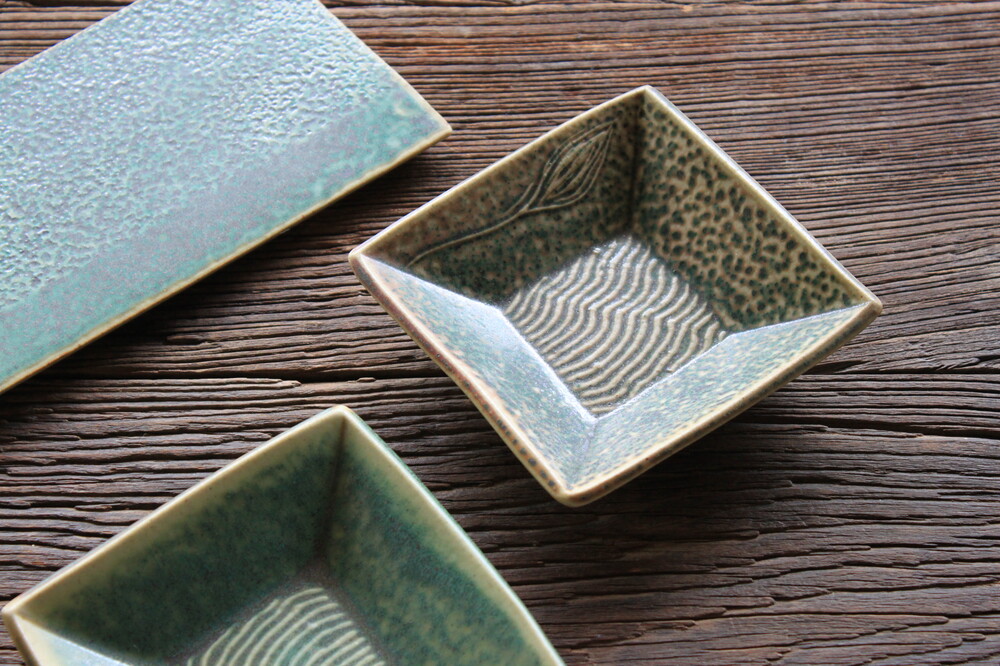 베이지-그린 색상이 자유롭게 오고가는 색감으로 그릇마다 색의 표현이 조금씩 다릅니다