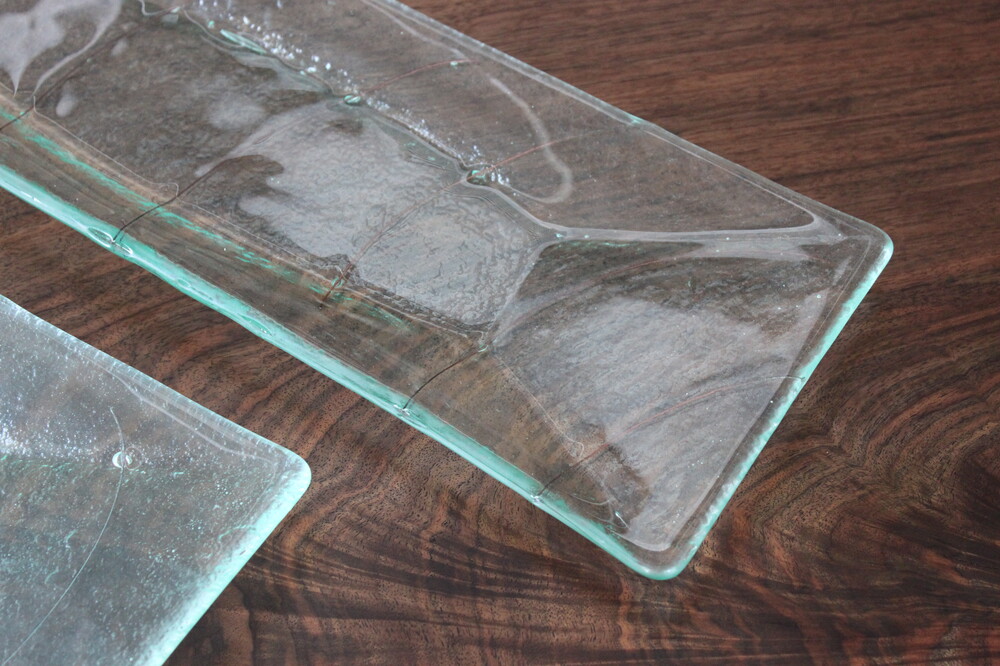 B-Grade/ glass 라인 사각 긴접시_투명