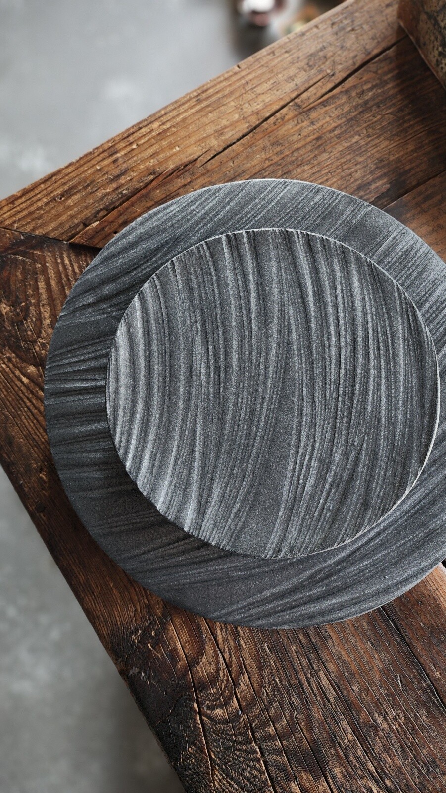 접시마다 선의 흐름과 깊이가 모두 다르게 표현됩니다.