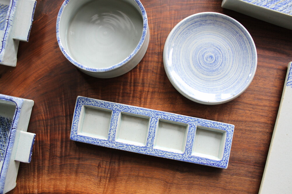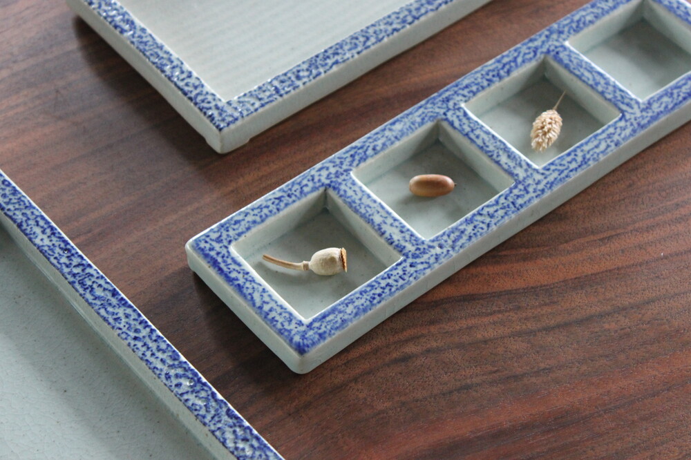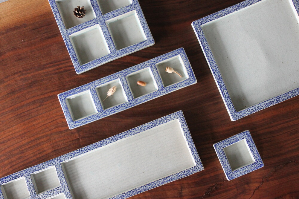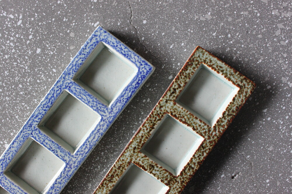 벼루 소스 4칸 나눔접시 _ 블루, 브라운