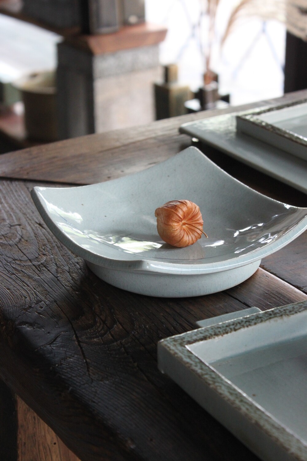 요리가 포근히 담기는 오목한 형태의 굽접시입니다.