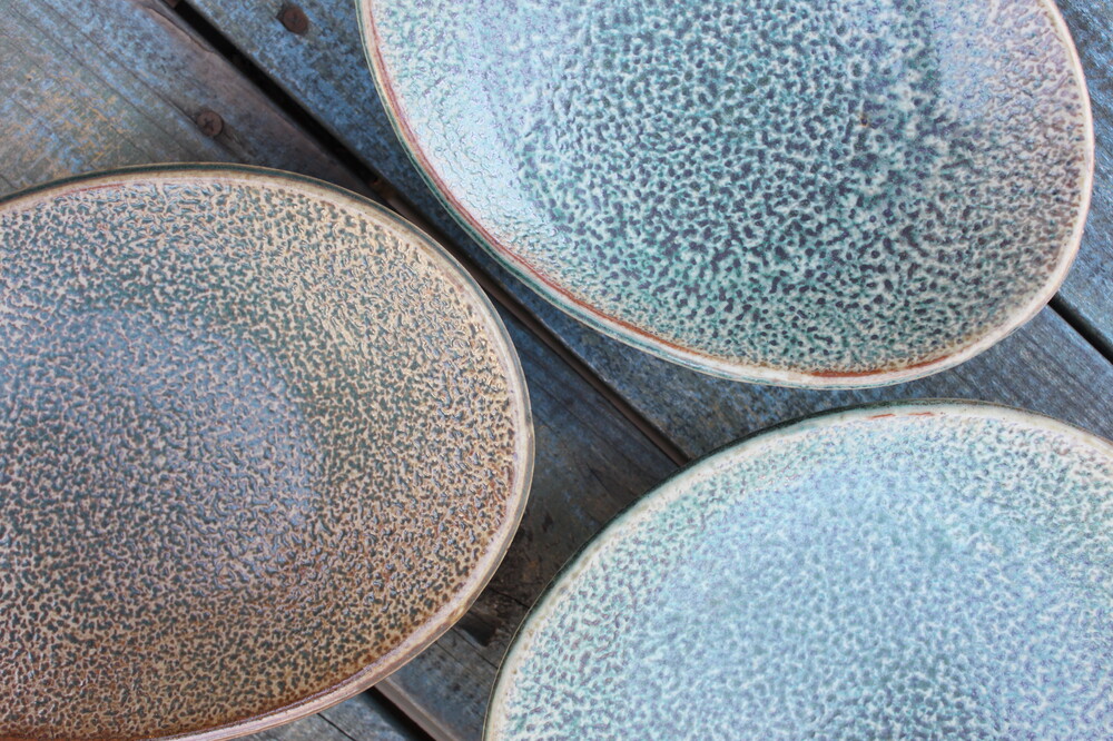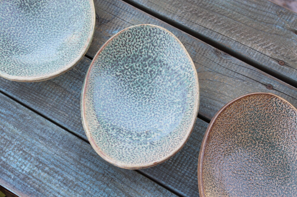 부드러운 곡선의 접시에 흙을 토닥토닥 두드려 질감을 담아내었습니다
