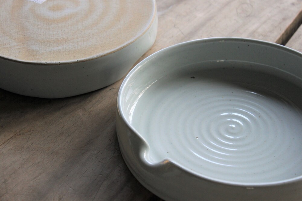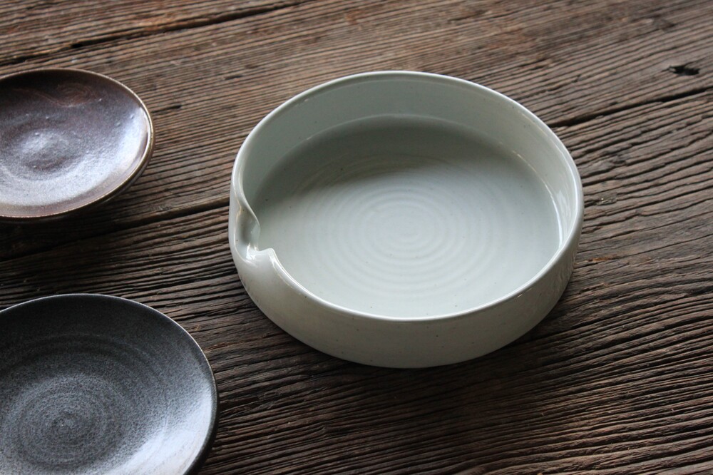 흙을 빚어 만드는 수공예 도자기접시입니다