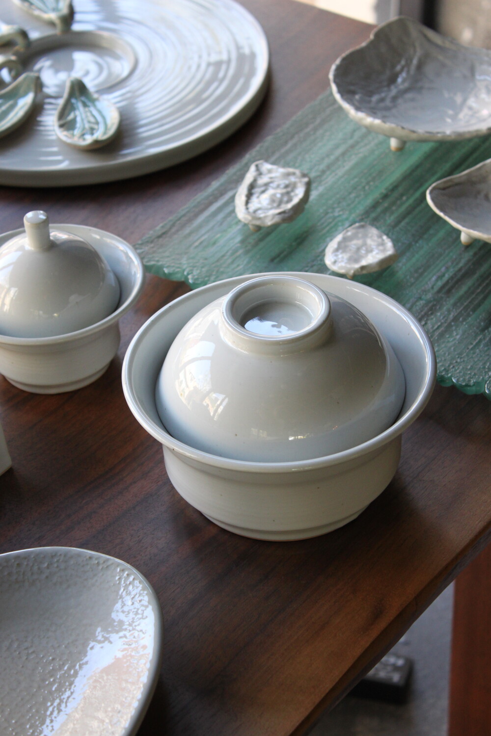물레작업으로 정성스럽게 만든 도자기 뚜껑그릇