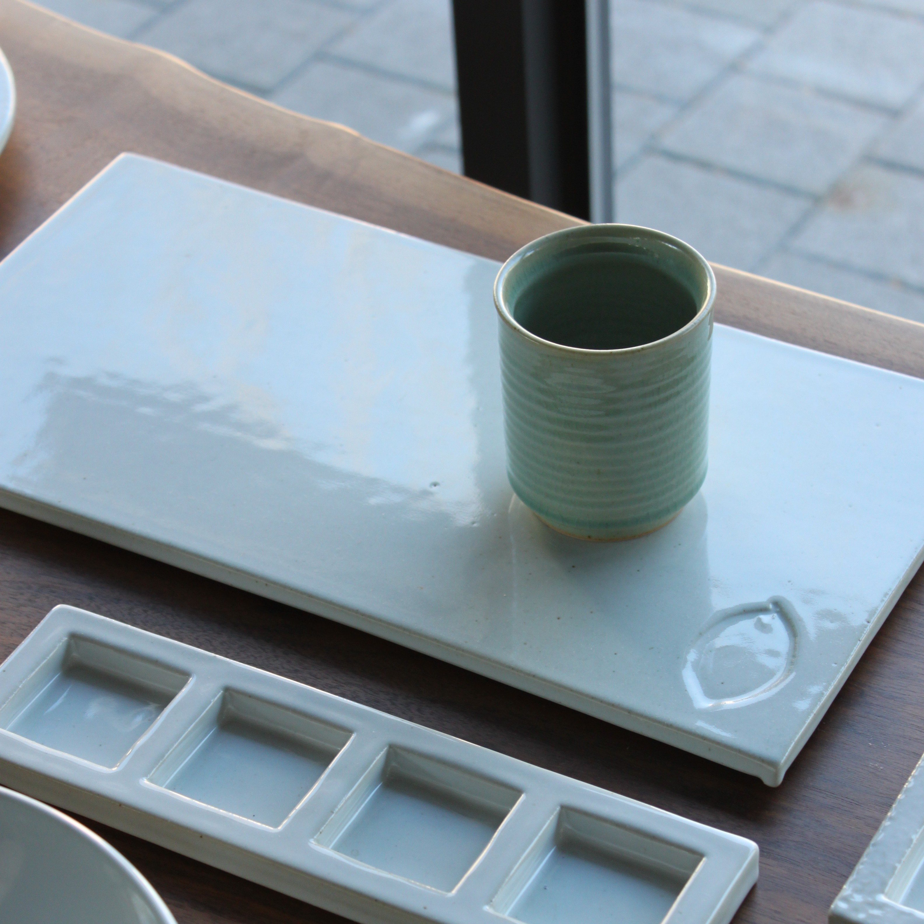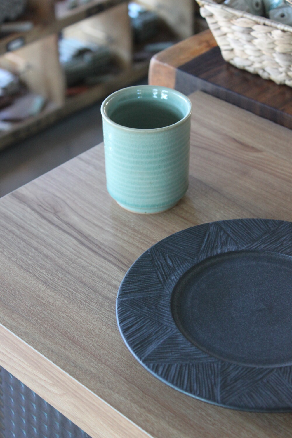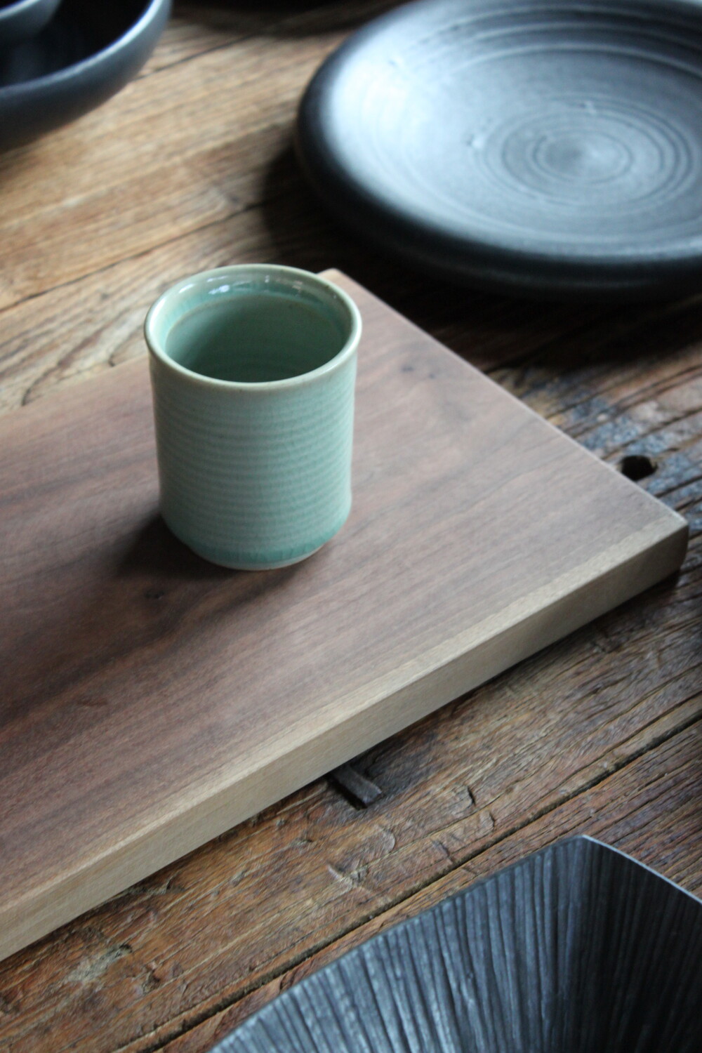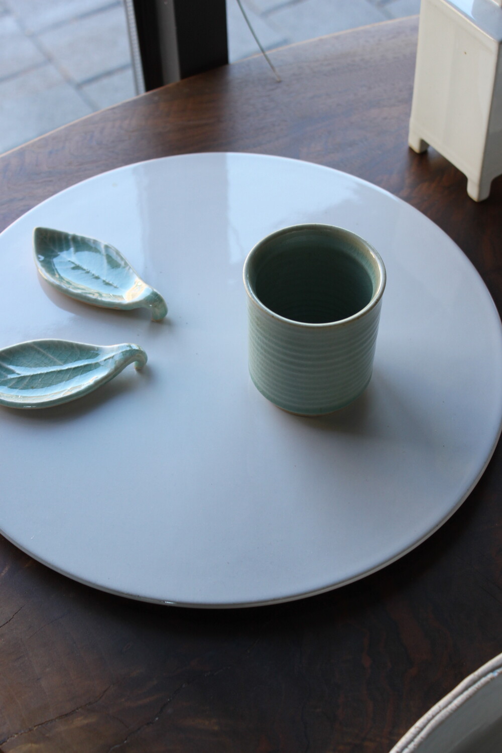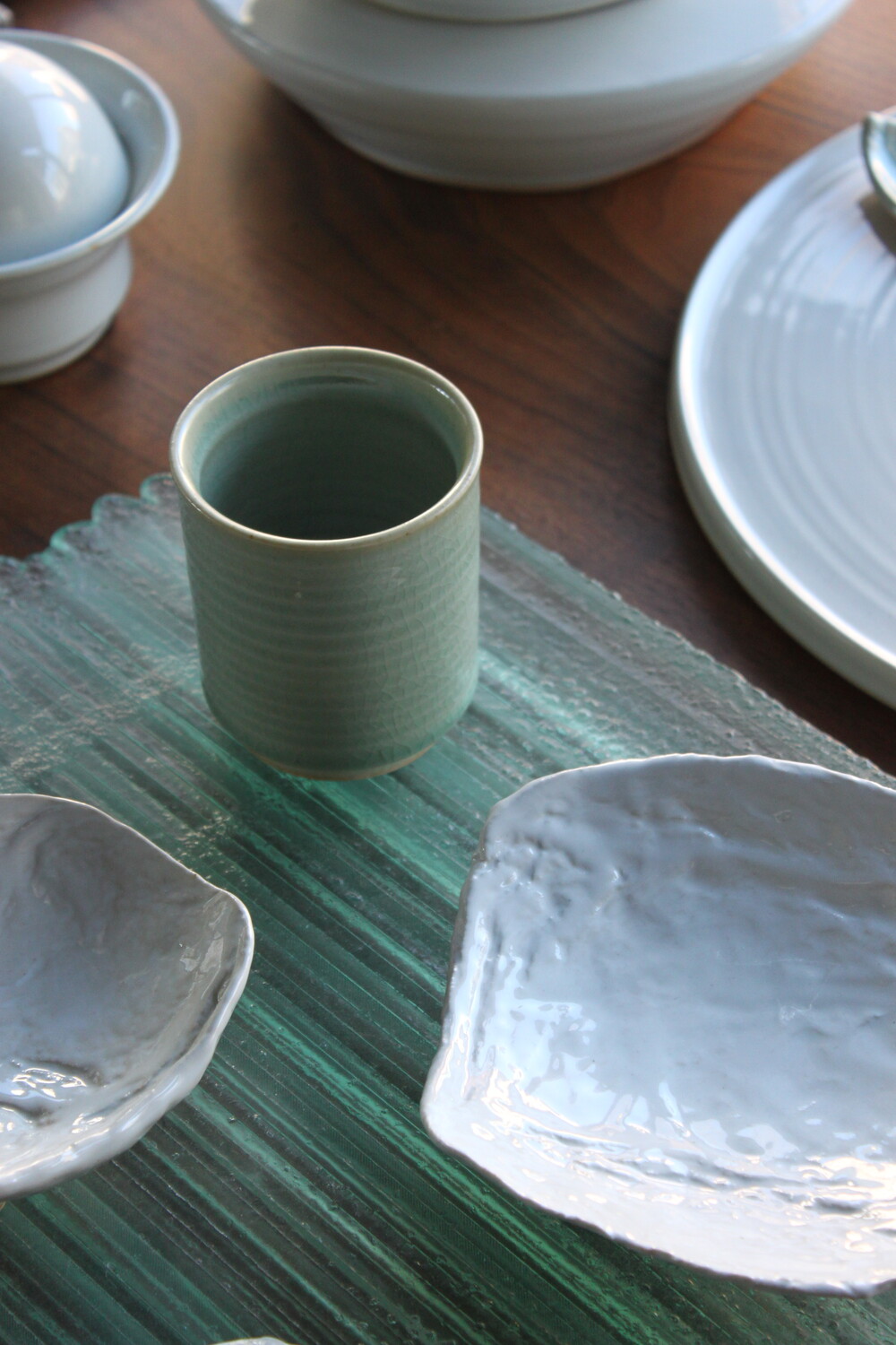 A hand-thrown ceramic cup with a clear mint celadon glazeThick, weighty, and marked by subtle wheel traces that bring quiet depth to everyday moments