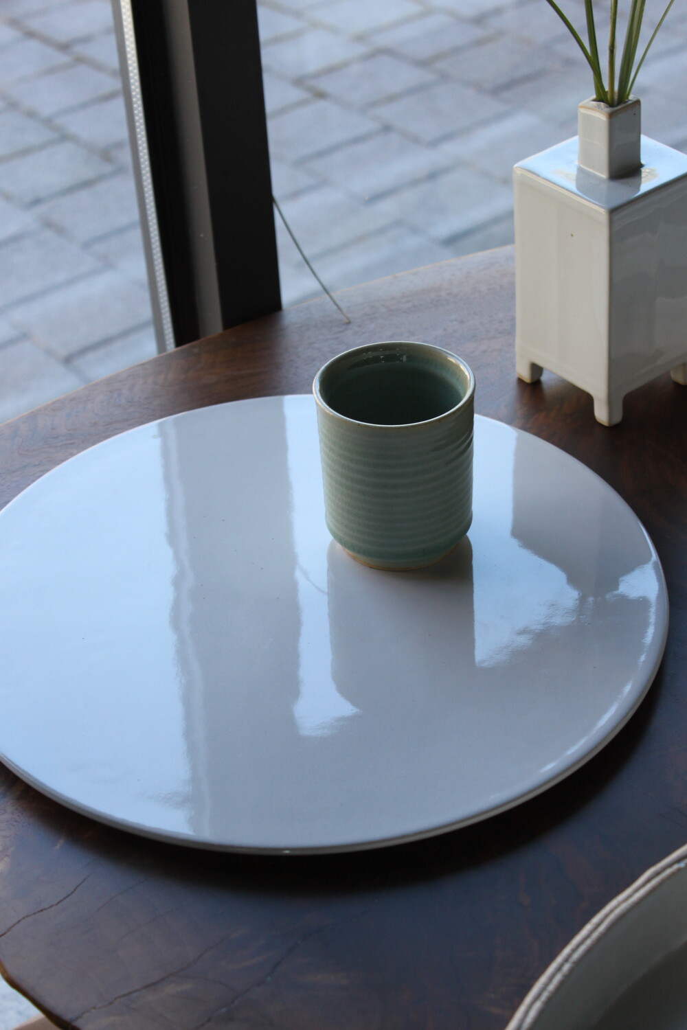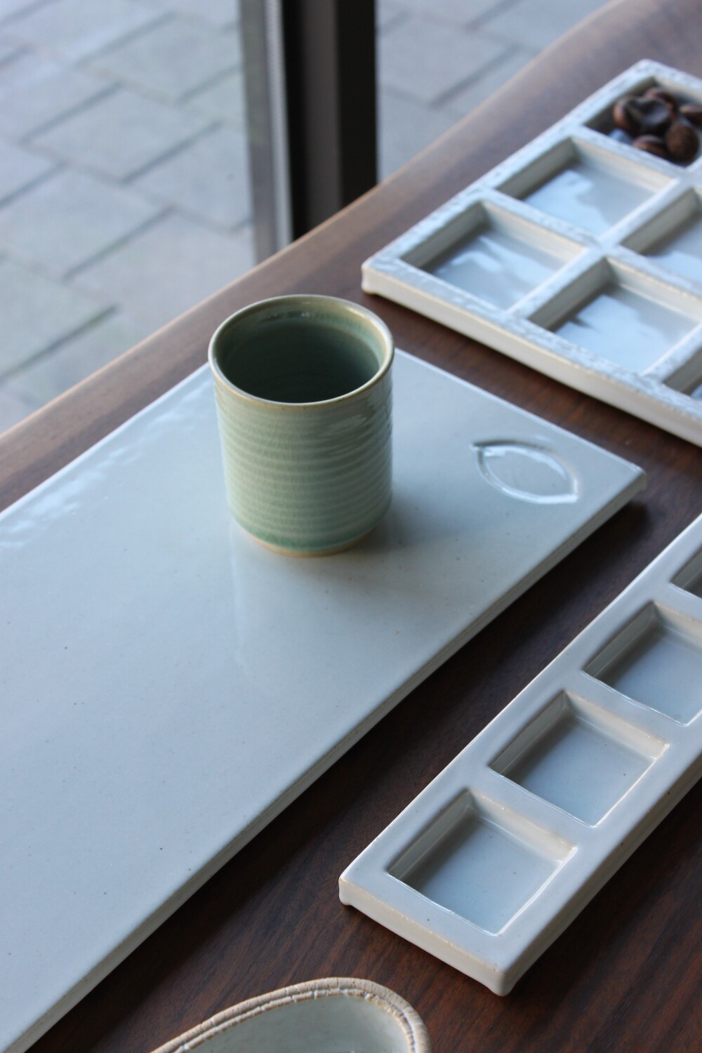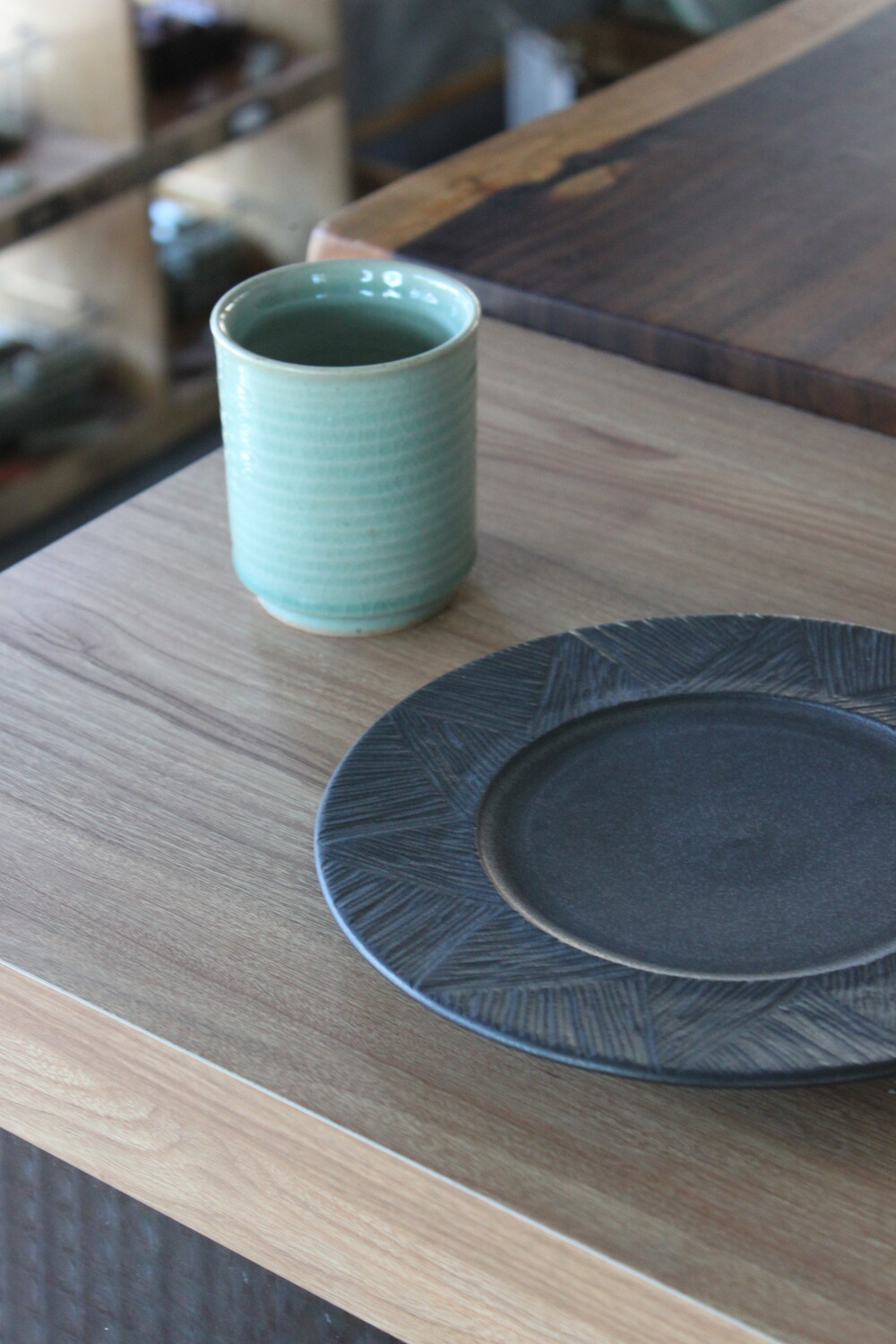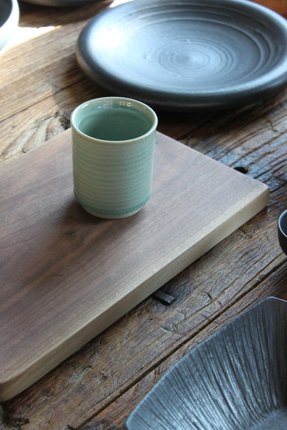 A hand-thrown ceramic cup with a clear mint celadon glazeThick, weighty, and marked by subtle wheel traces that bring quiet depth to everyday moments