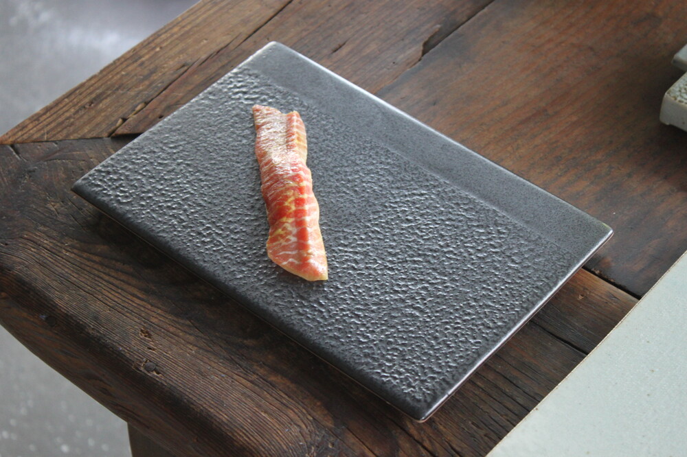 초밥 열개가 그림같이 담겨지는 사이즈의 평접시 입니다