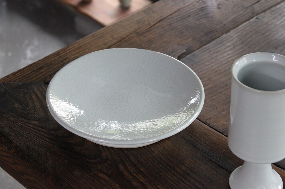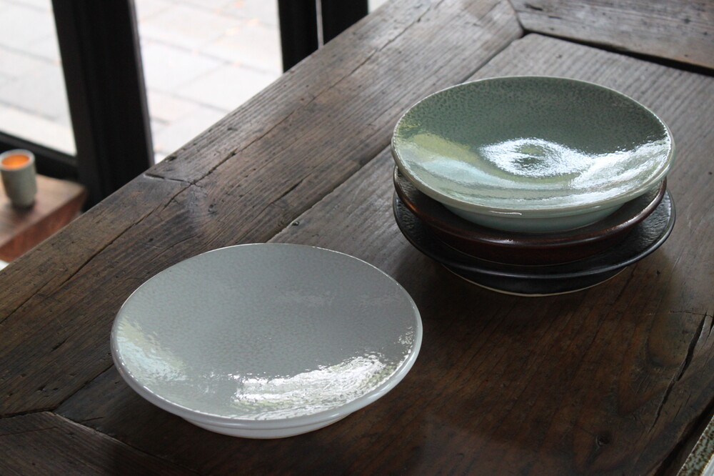 묵직한 그립감과 깊은 유약색이 돋보이는 도자기 접시입니다.
