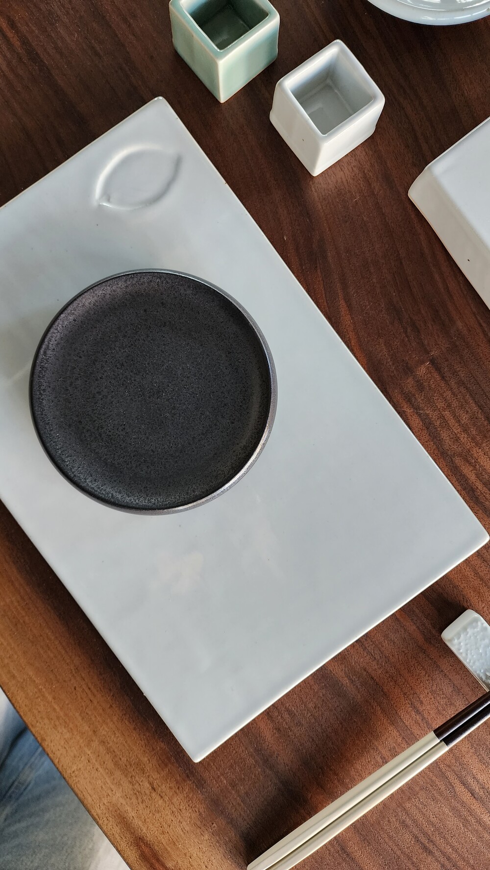 밥공기와 국공기, 수저받침 & 소스볼, 물컵까지 모두 올려놓을 수 있는 넉넉한 사이즈의 매트입니다