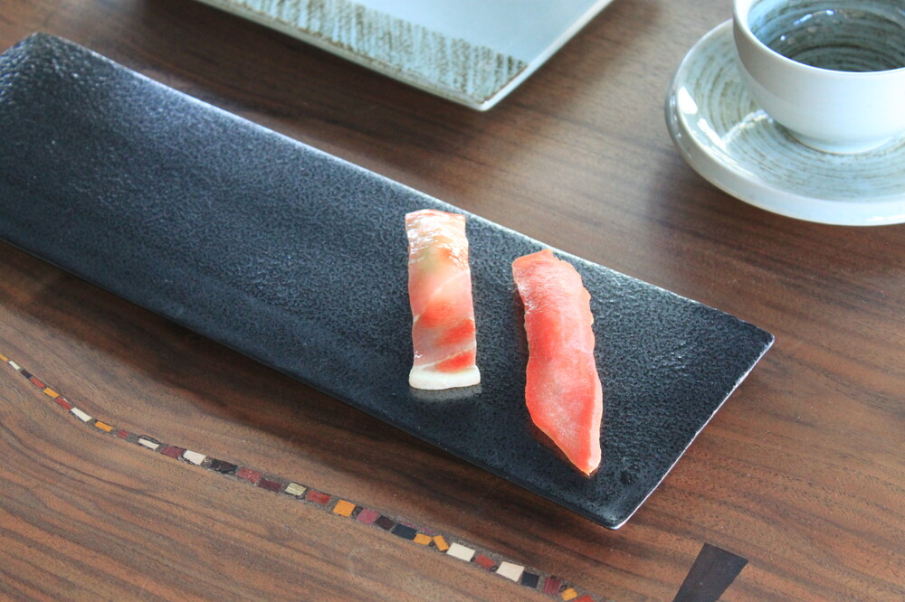접시 윗면의 질감은 손으로 두드려 나타내었습니다
