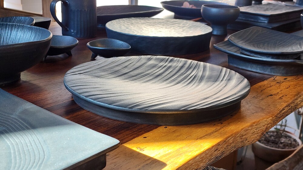 sale 30% / 무광블랙 유성 원형굽접시 L size