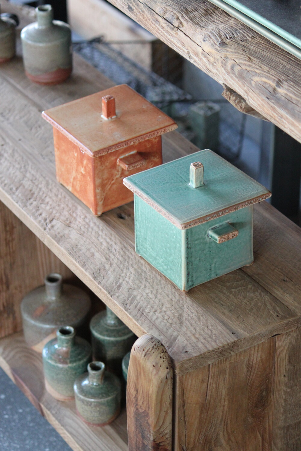 그린과 오렌지 컬러는 유약의 흐름을 의도적으로 살려
