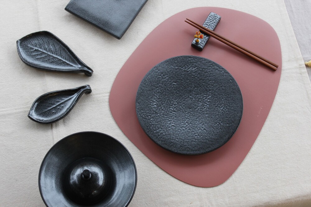 단아 두드림 원형굽접시 m _ 버건디, 블랙