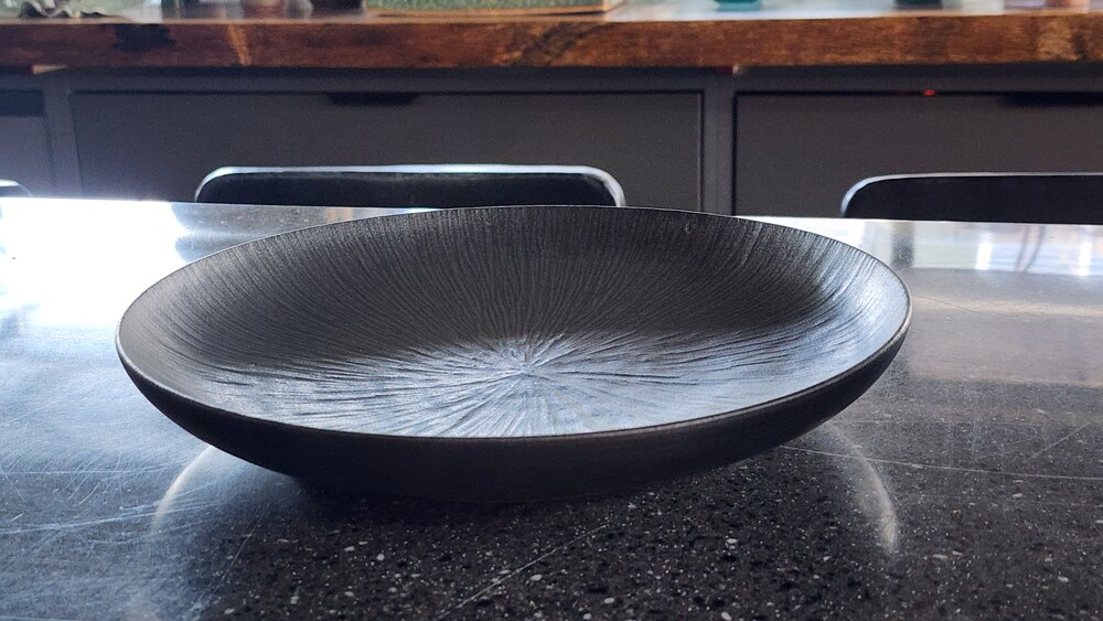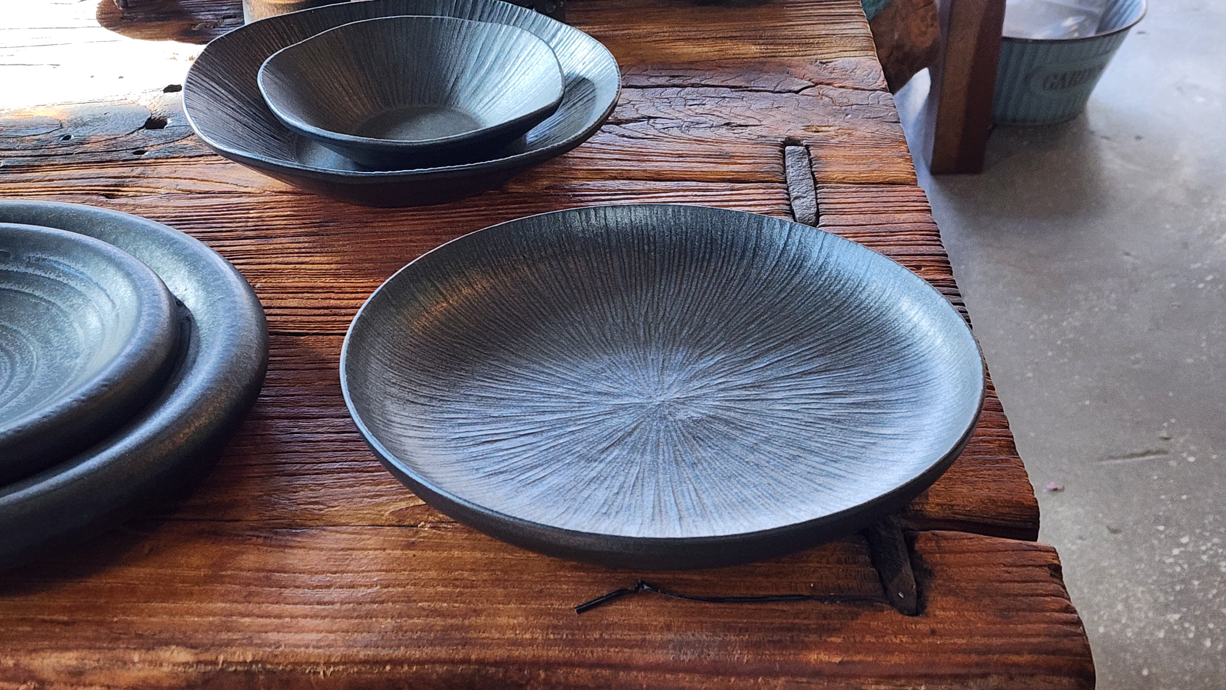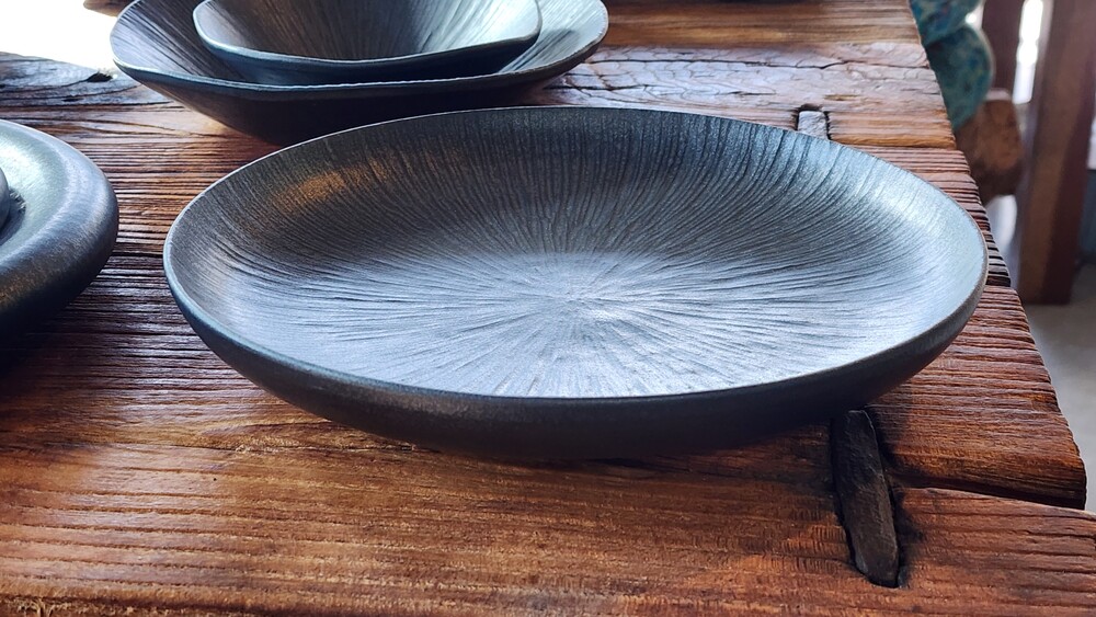 표면에 더해진 섬세한 조각이 그릇의 멋을 한층 살린 특대 사이즈 플레이트입니다.