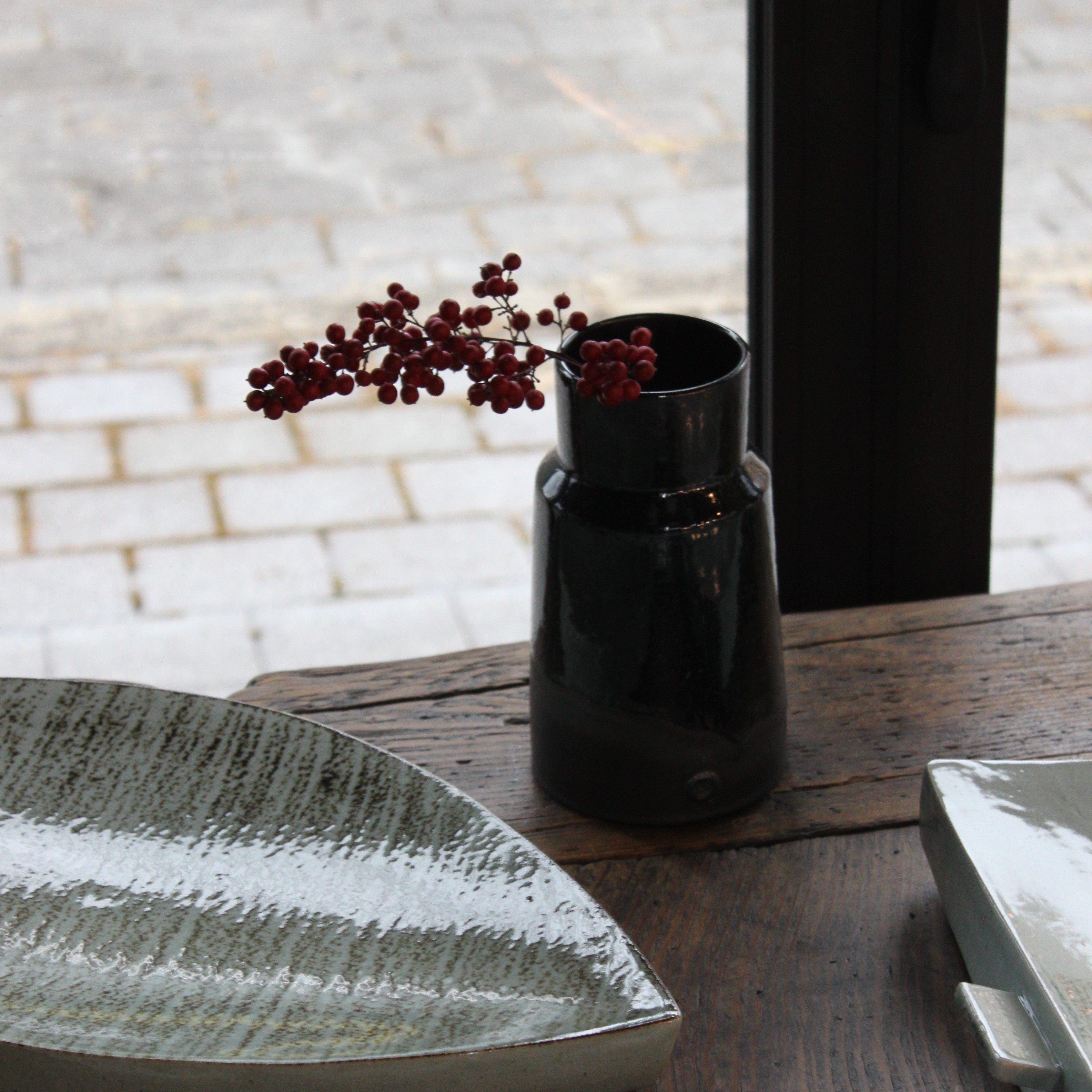 차분하지만 깊은 무게감을 더해주는 수공예 화병입니다.