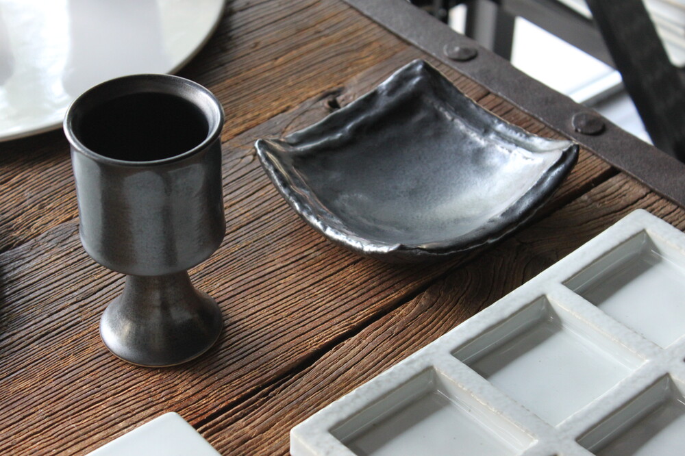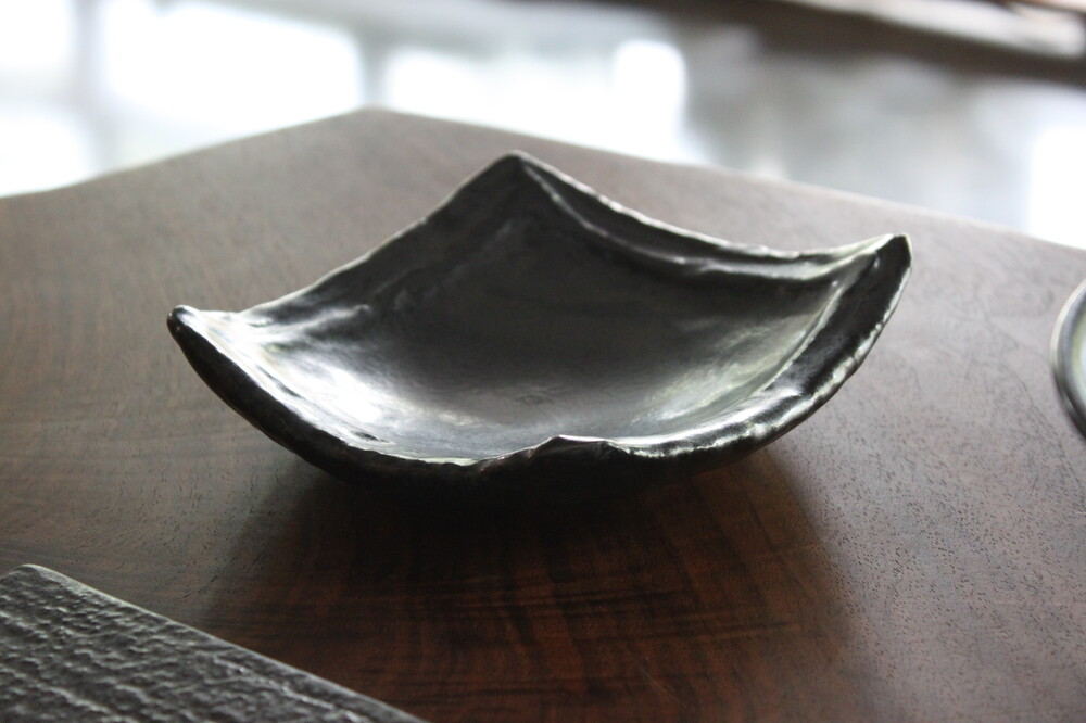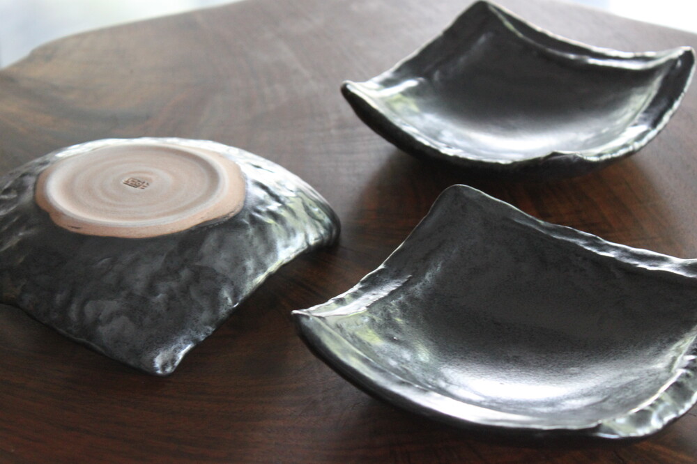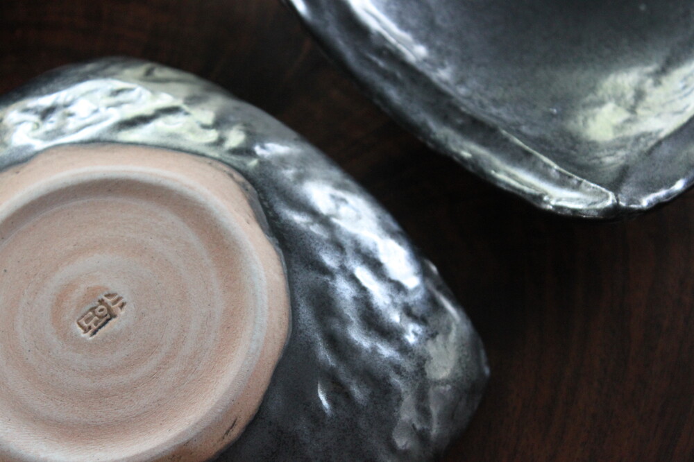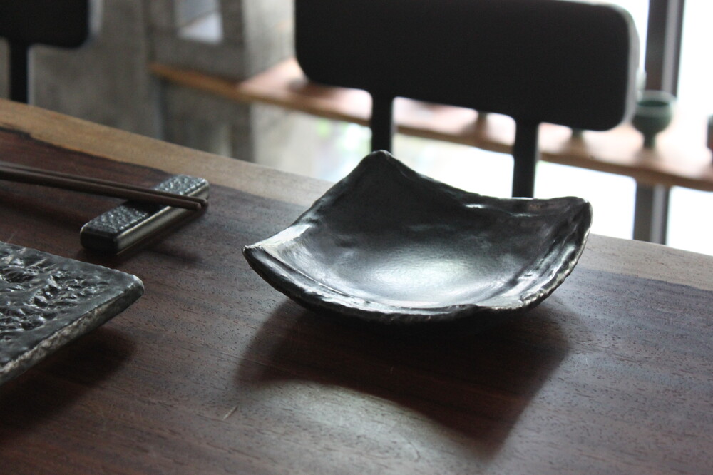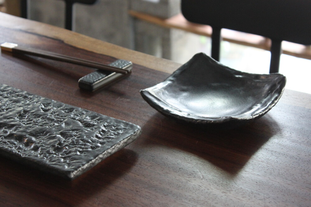 접시마다 거친 질감과 돌질감을 두드려서 담아내었습니다