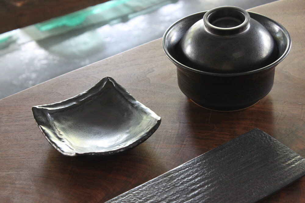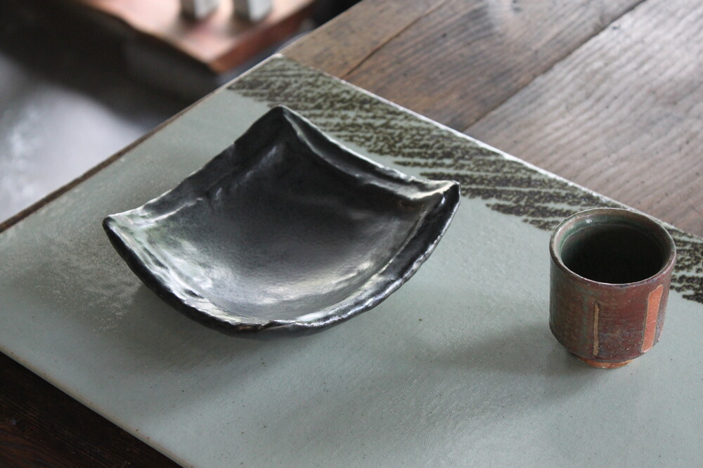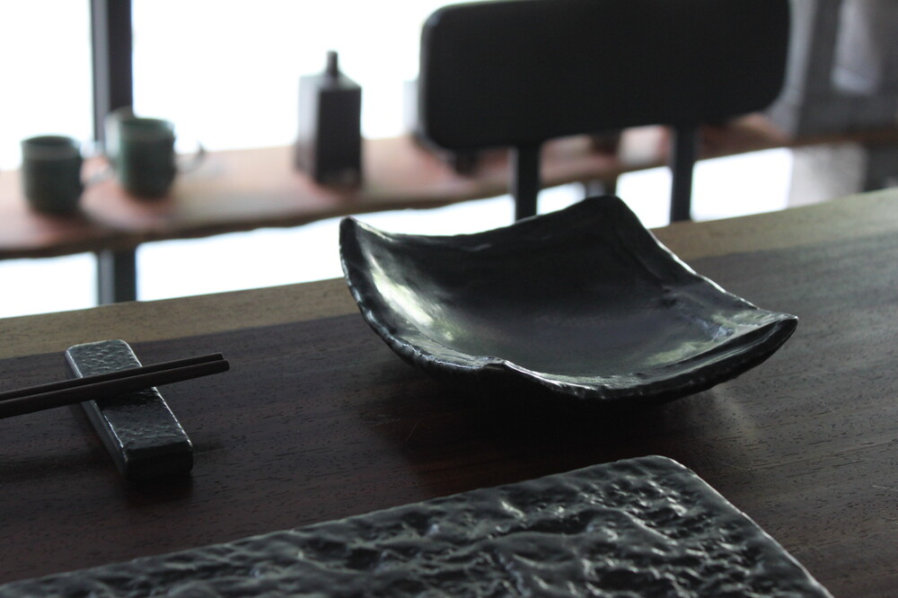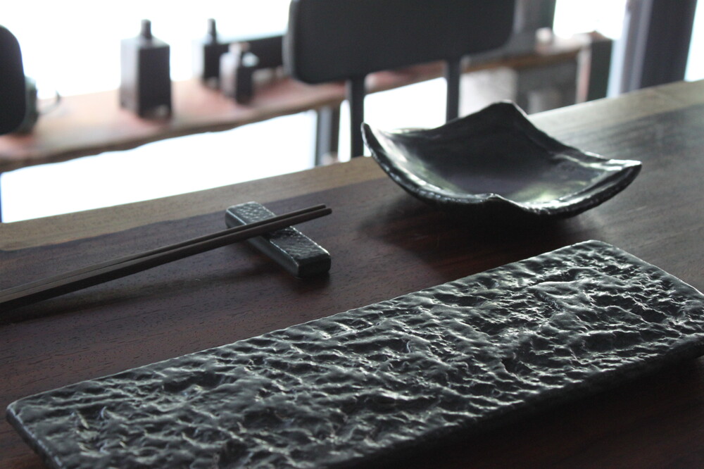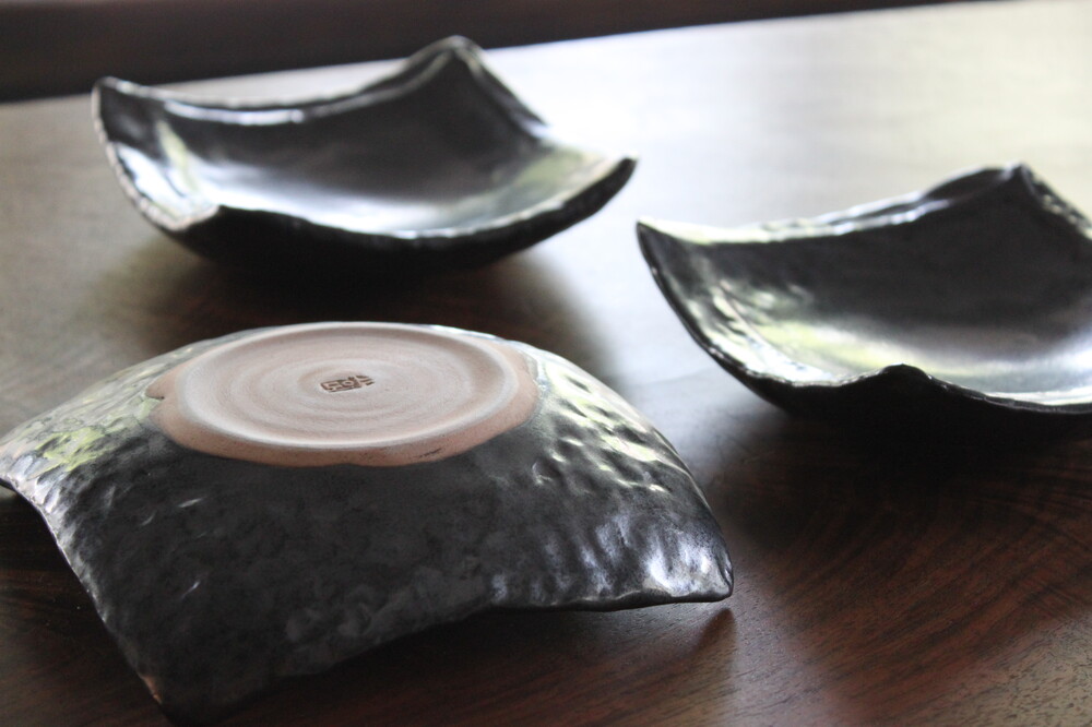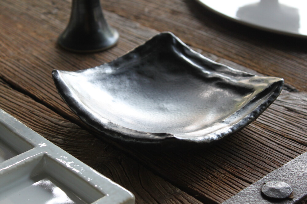 접시마다 거친 질감과 돌질감을 두드려서 담아내었습니다