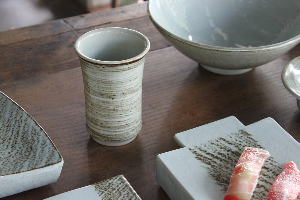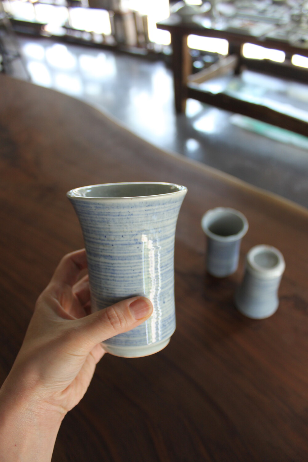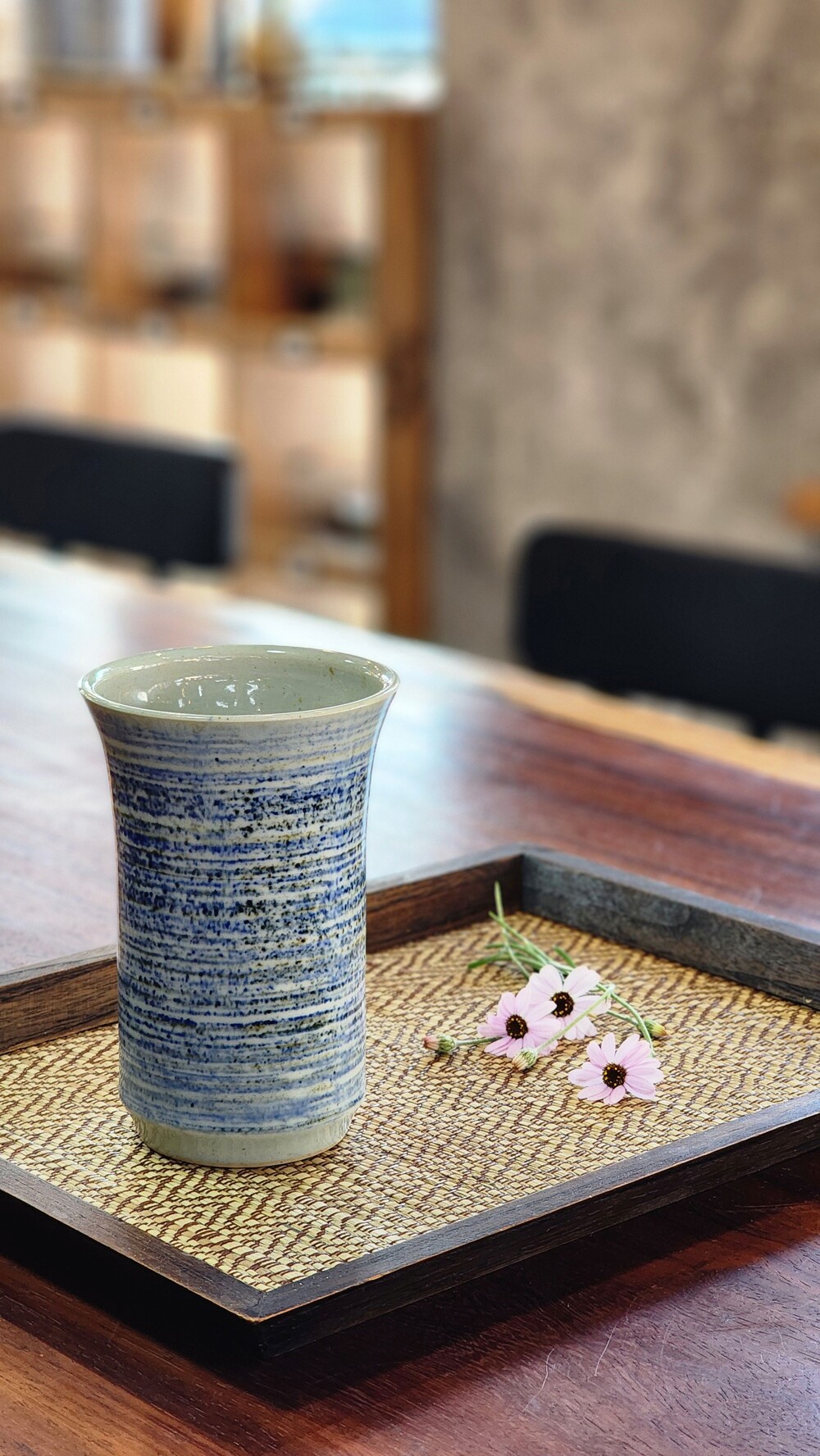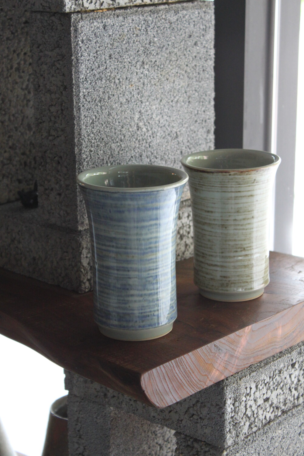 물레성형으로 정성스럽게 만든 키가 큰 컵이에요