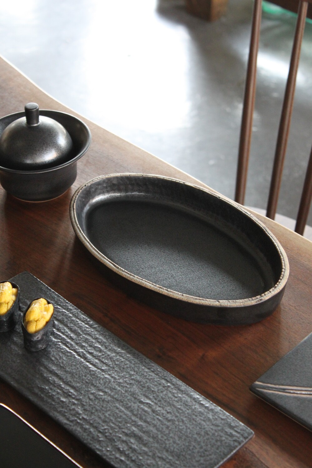 보트 형태의 수공예 요리접시입니다.