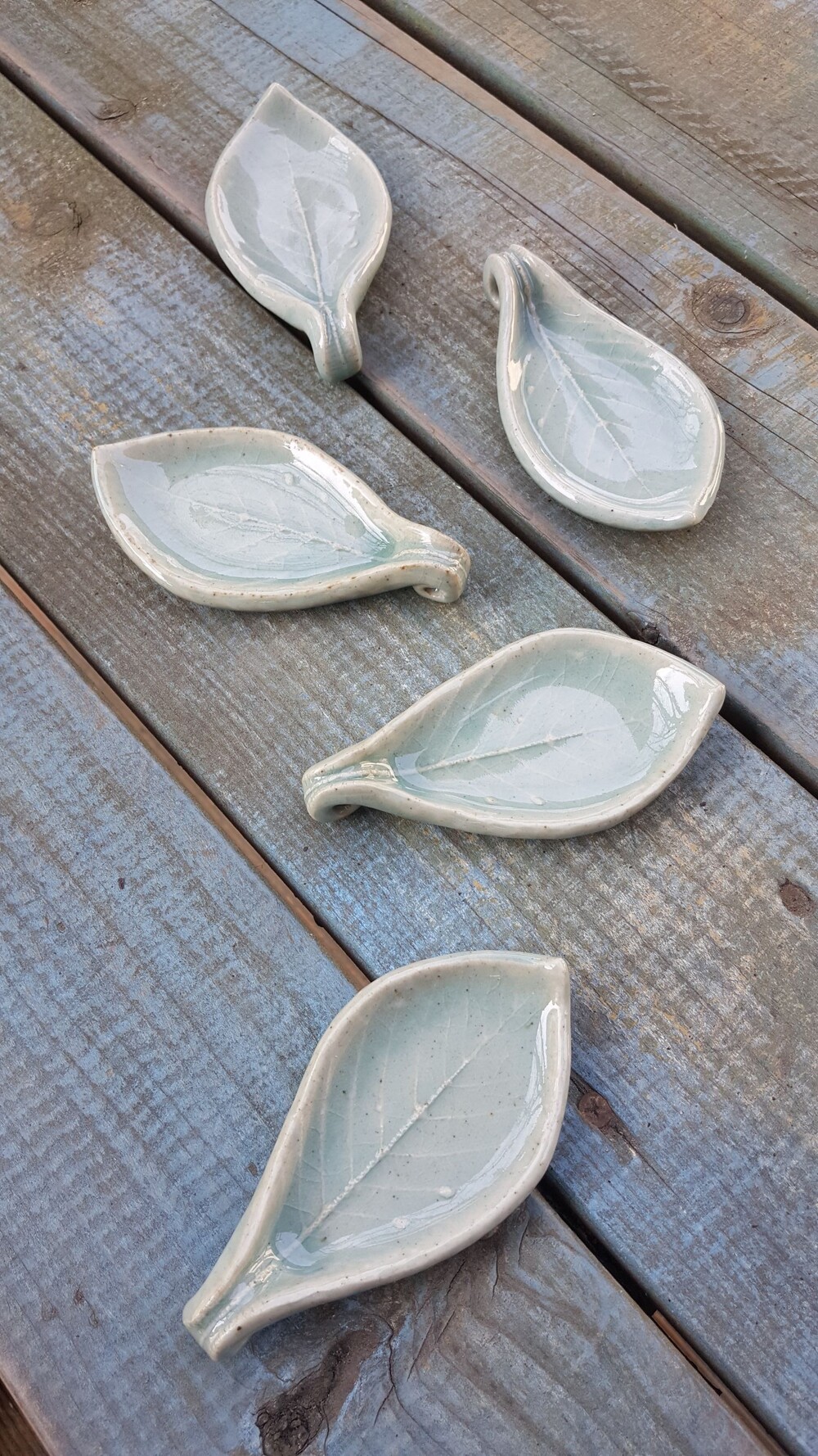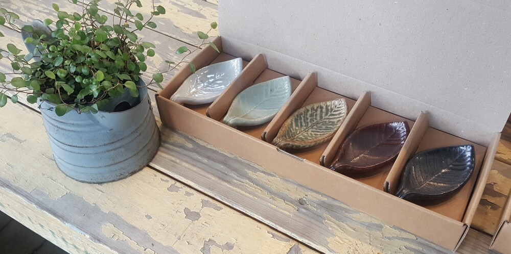 느티나무의 잎을 새겨놓은 깊이있는 다섯가지 색상의 수저받침입니다