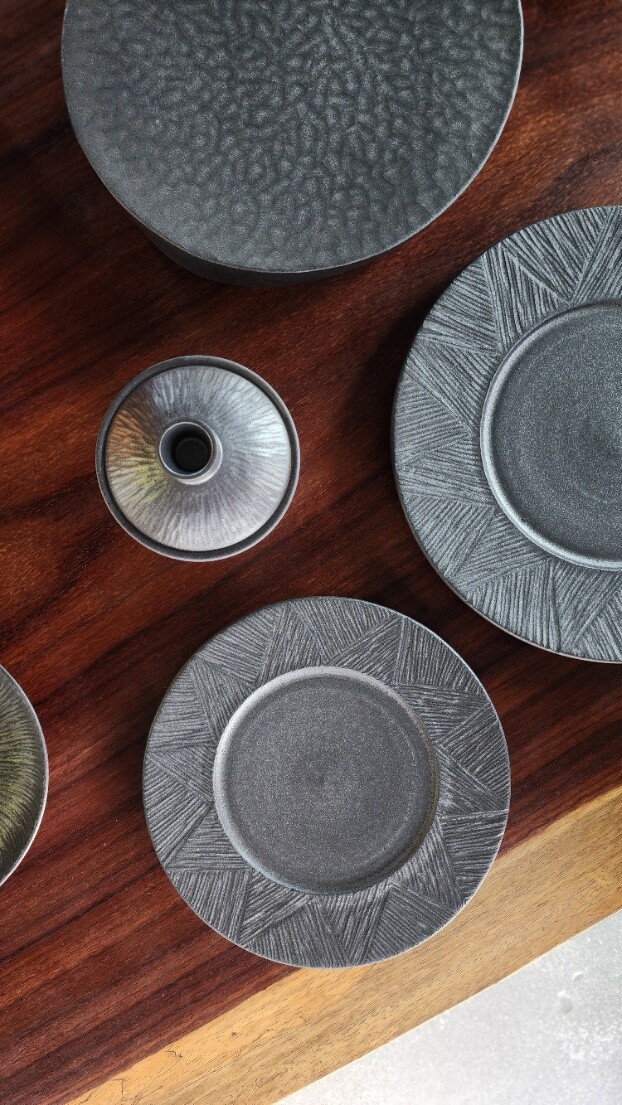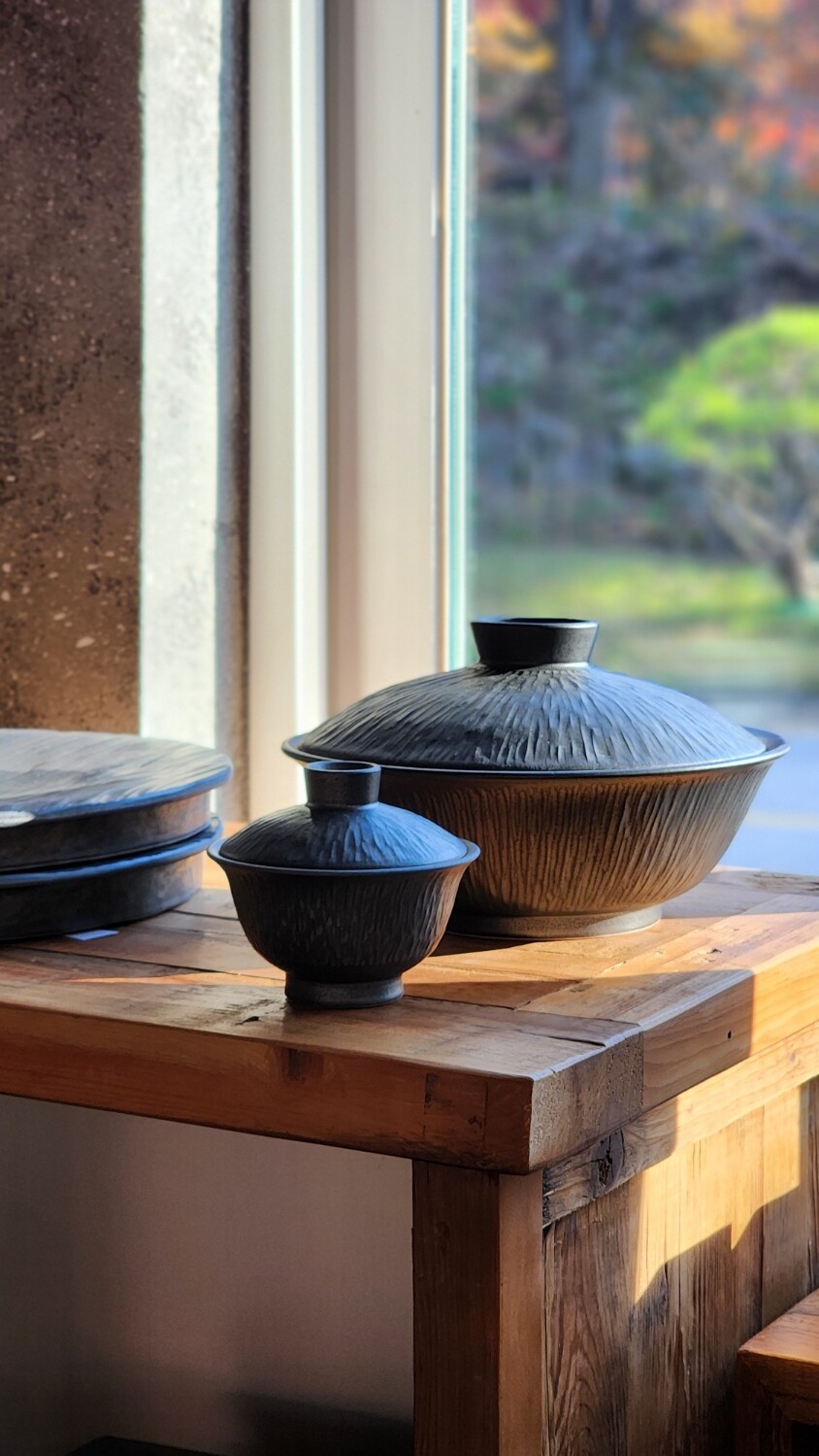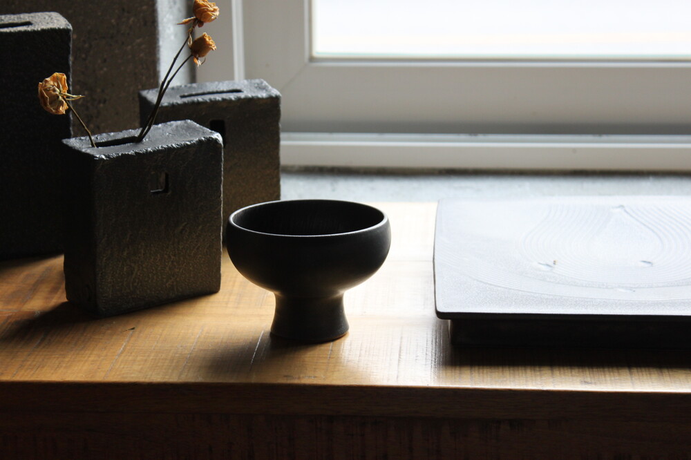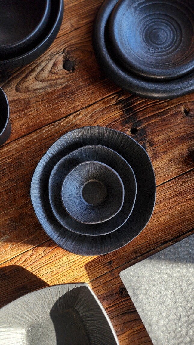 손으로 조각한 그릇의 라인이 만들어내는 깊이 있는 한 장.