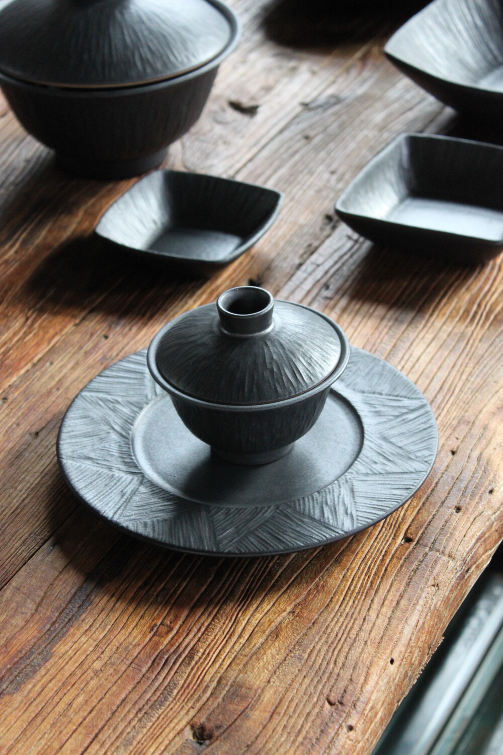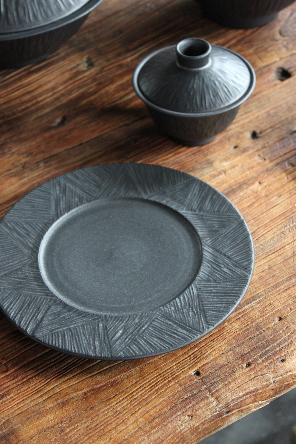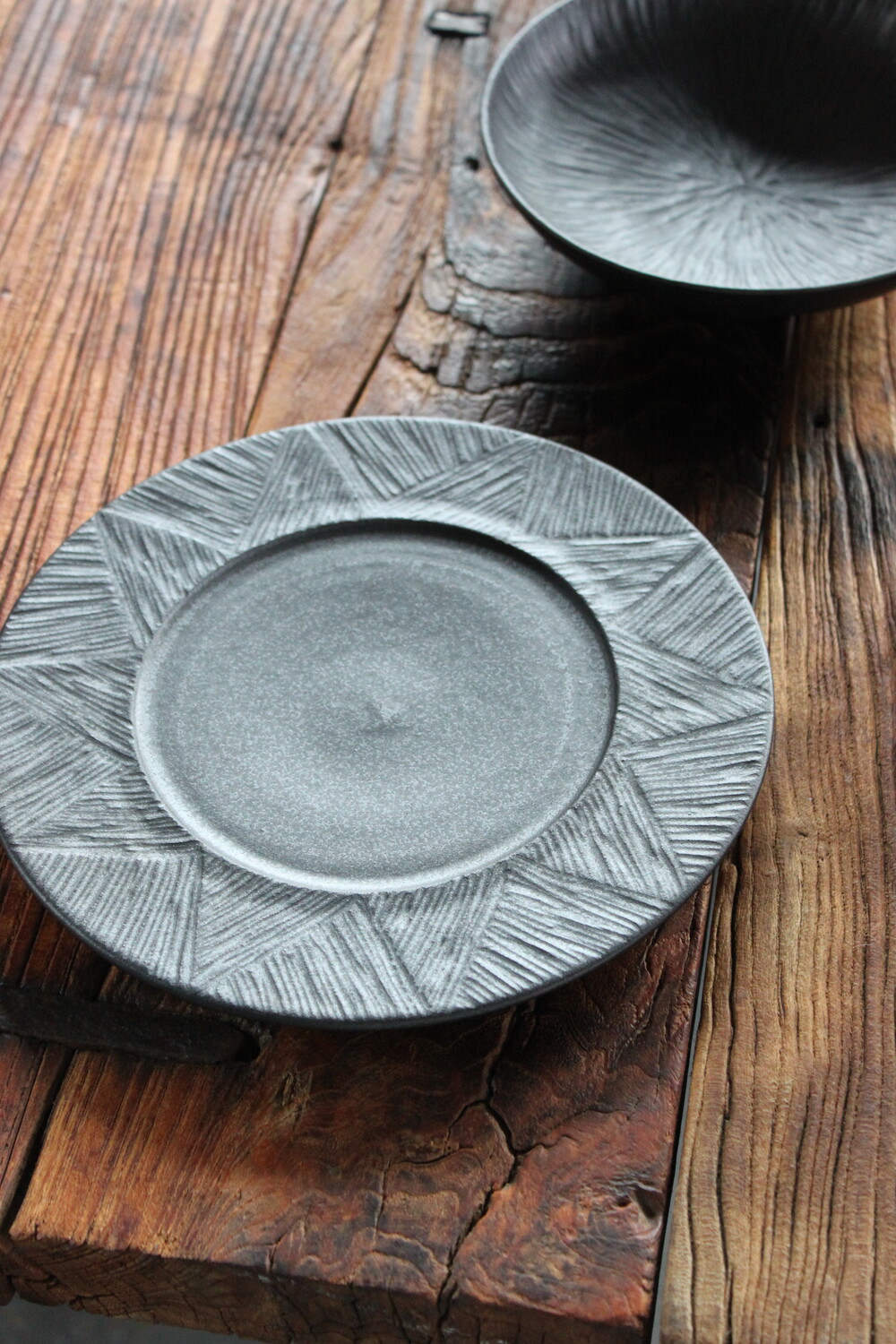 손으로 조각한 그릇의 라인이 만들어내는 깊이 있는 한 장.