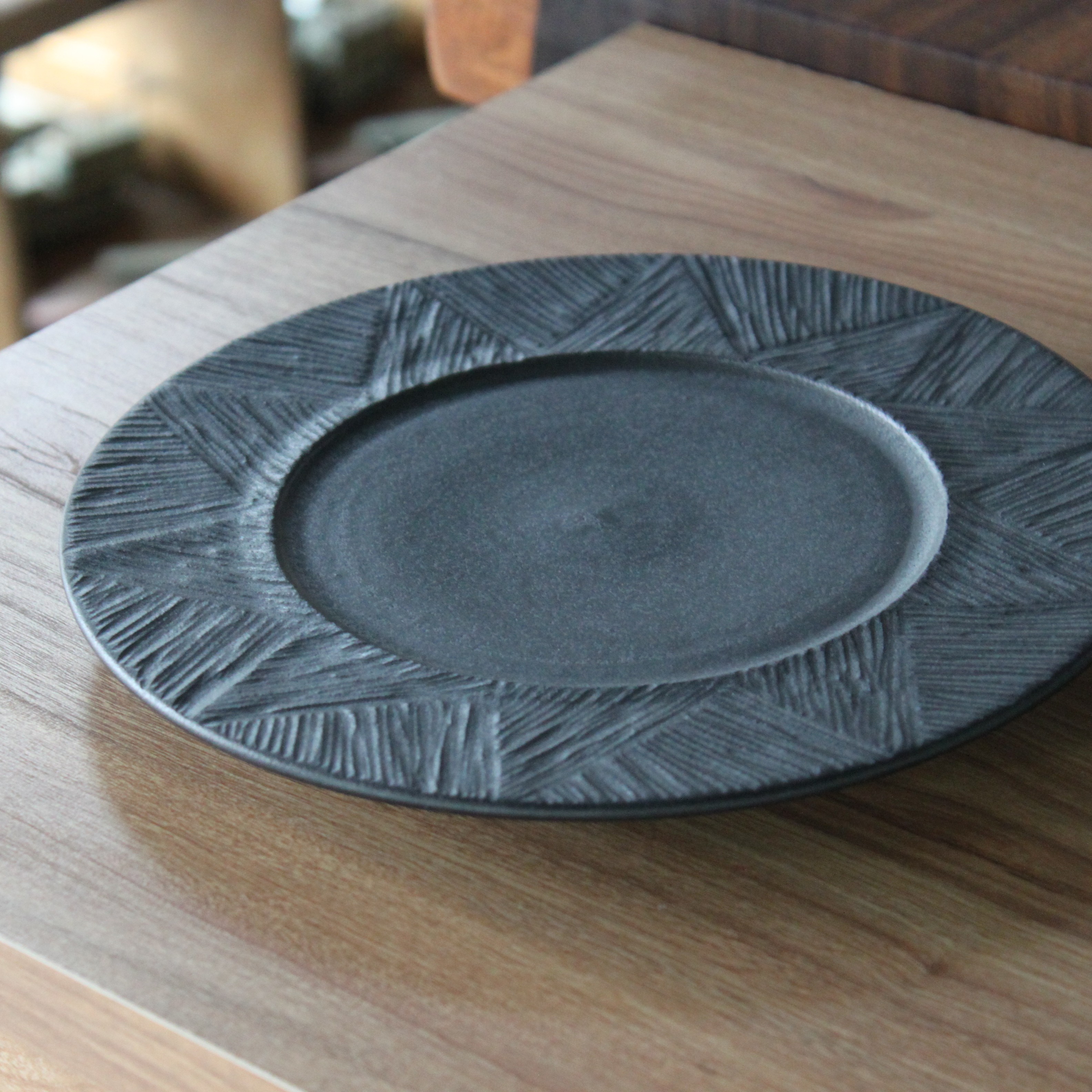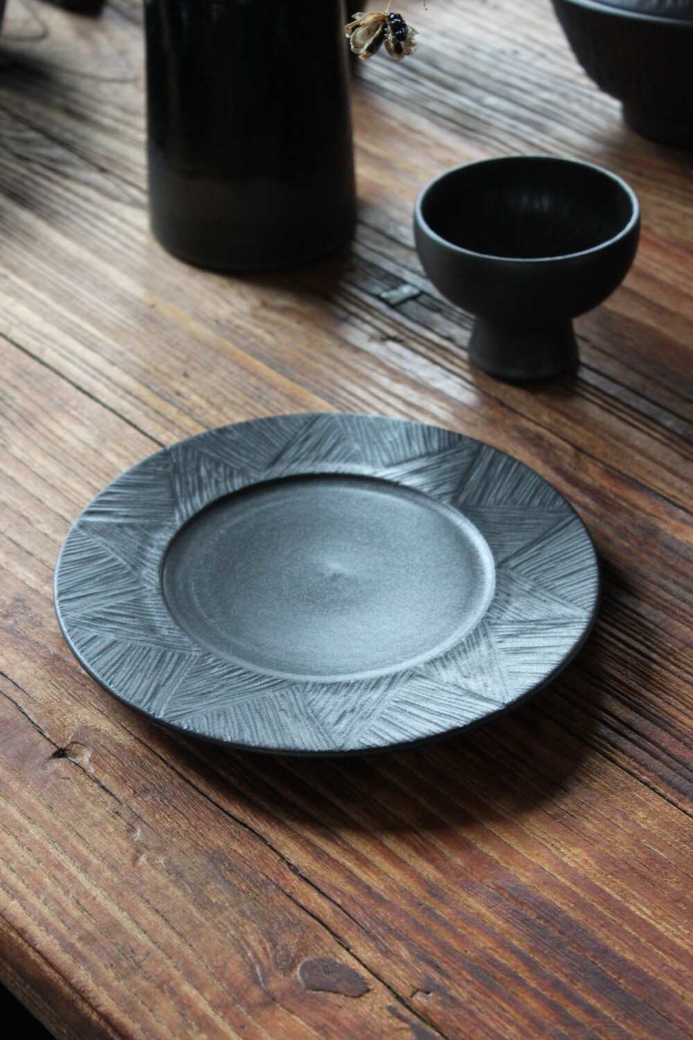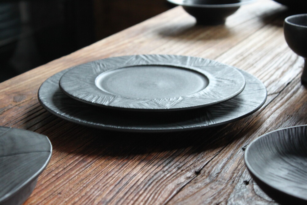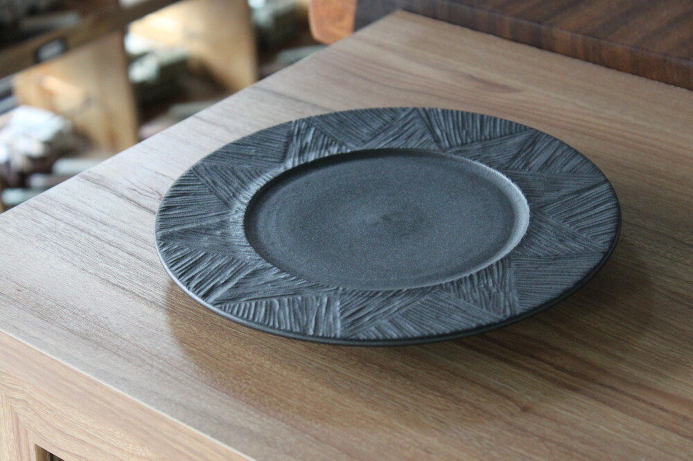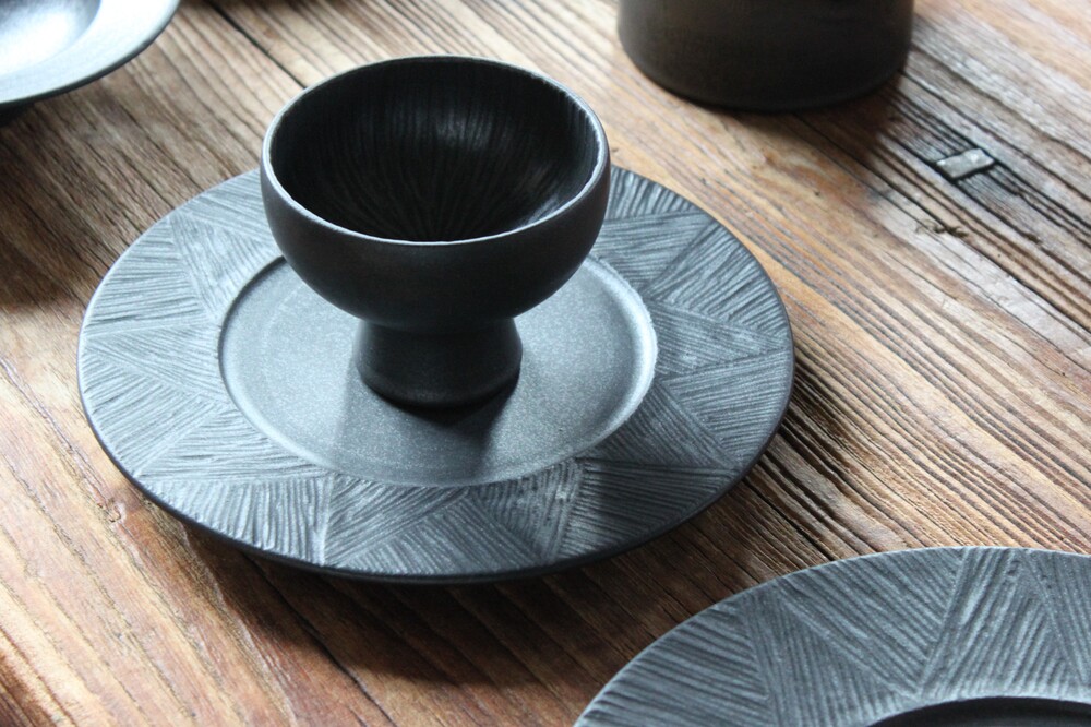 무광 블랙 컬러의 깊이 있는 분위기를 담은 원형접시입니다