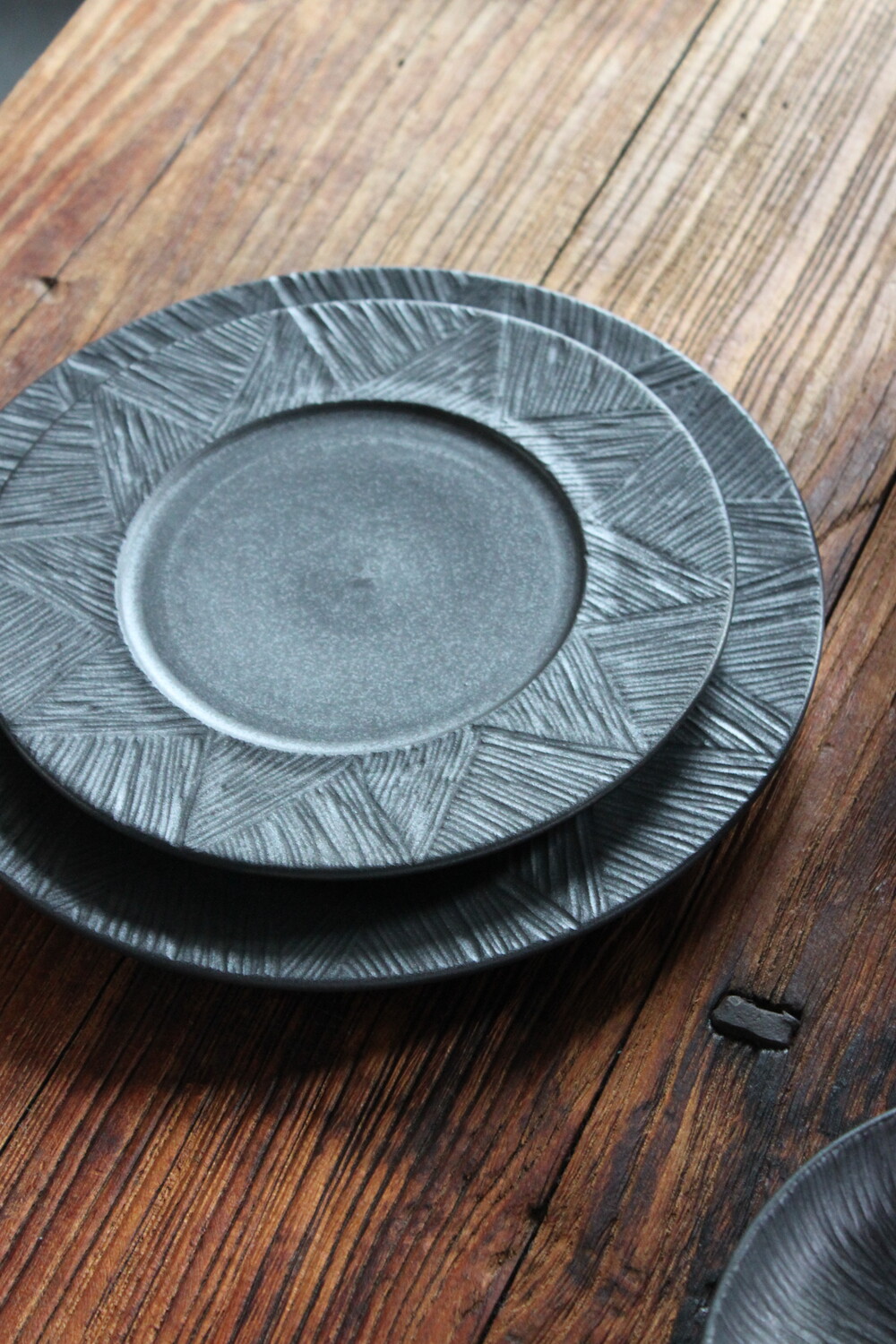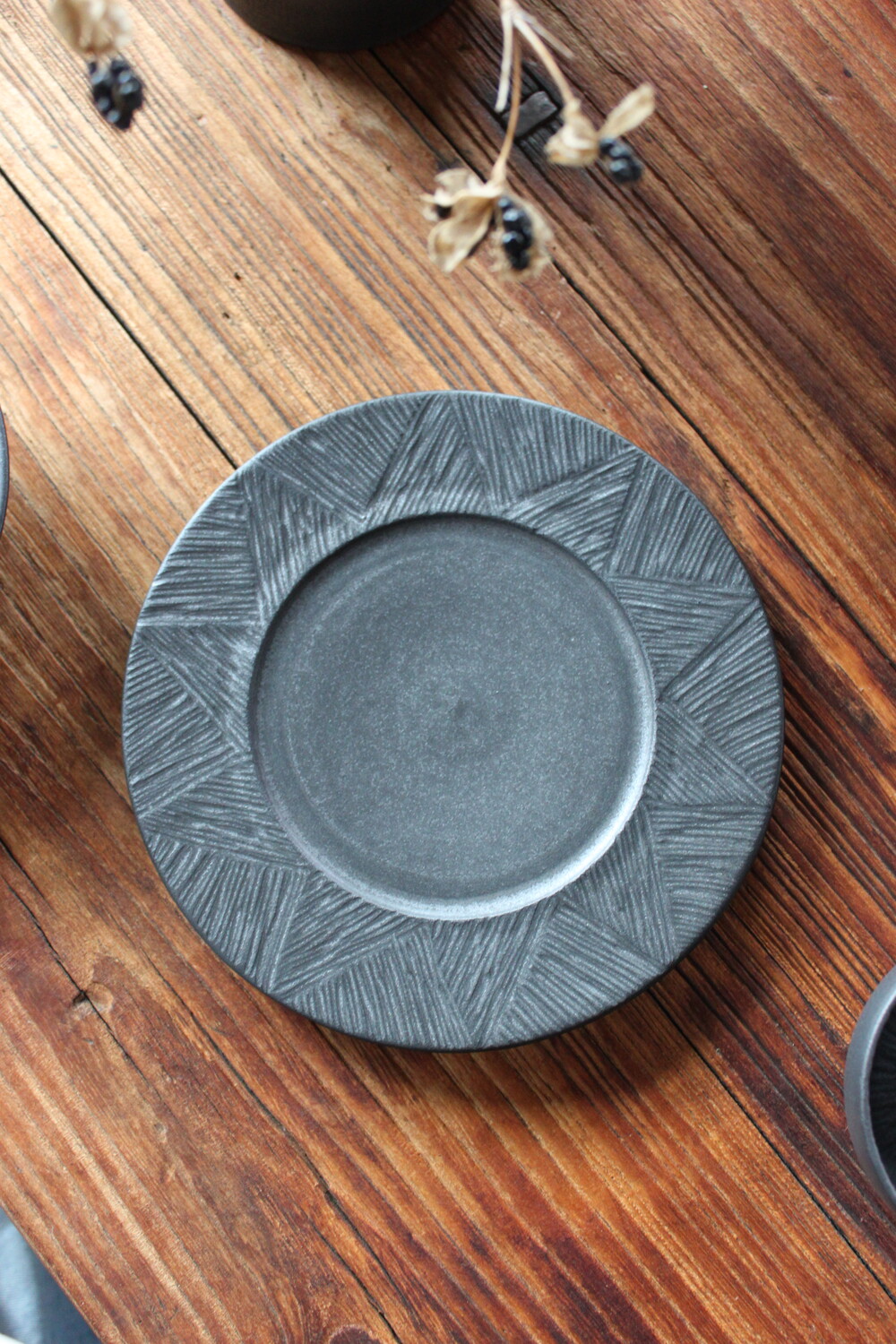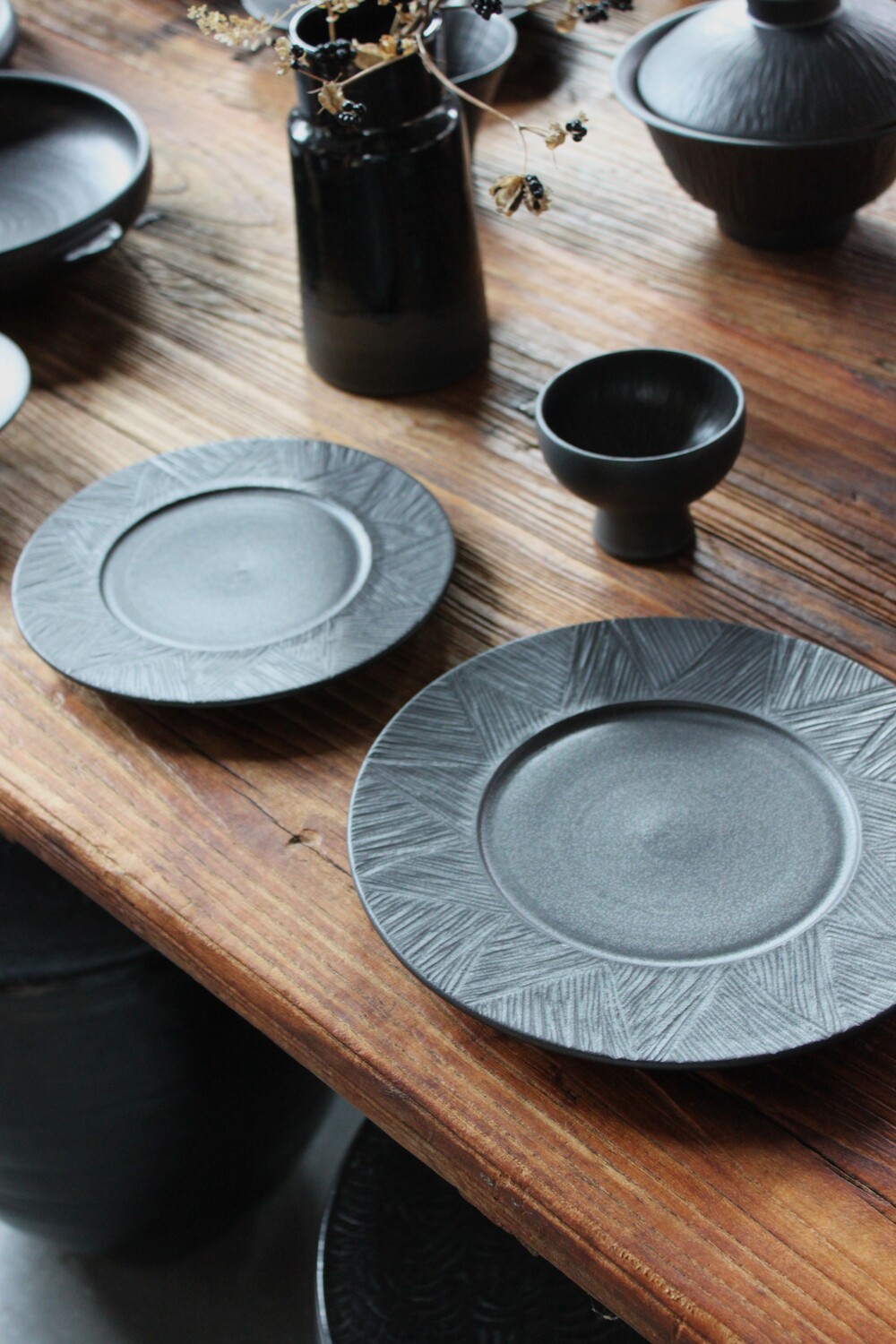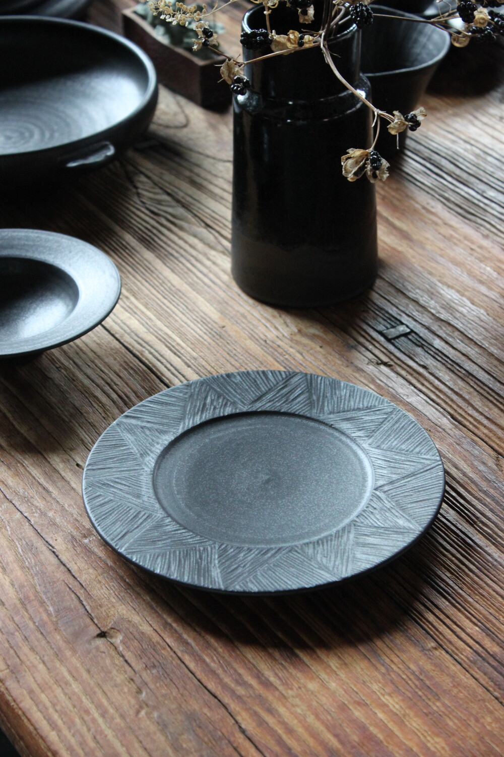 무광 블랙 컬러의 깊이 있는 분위기를 담은 원형접시입니다