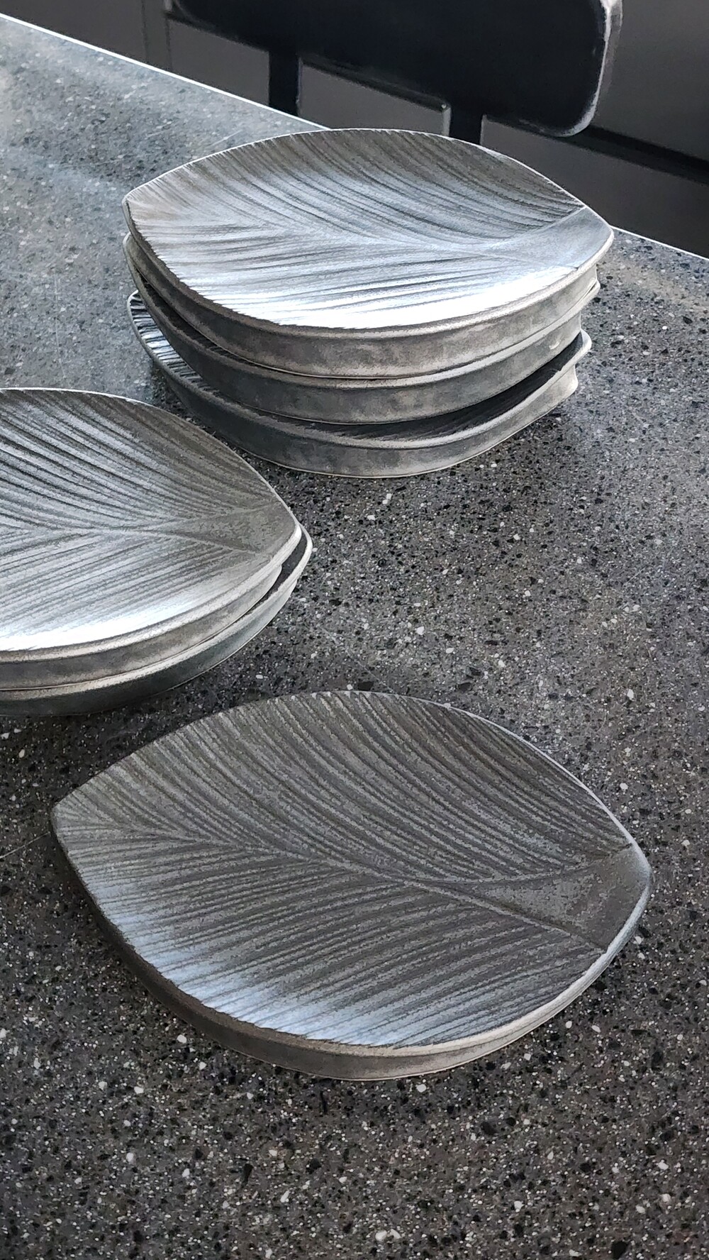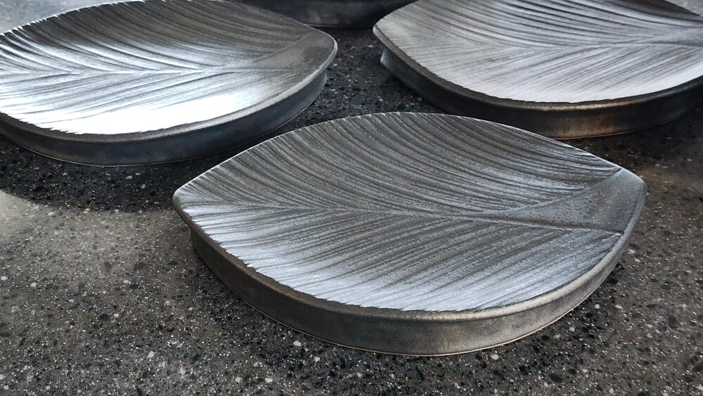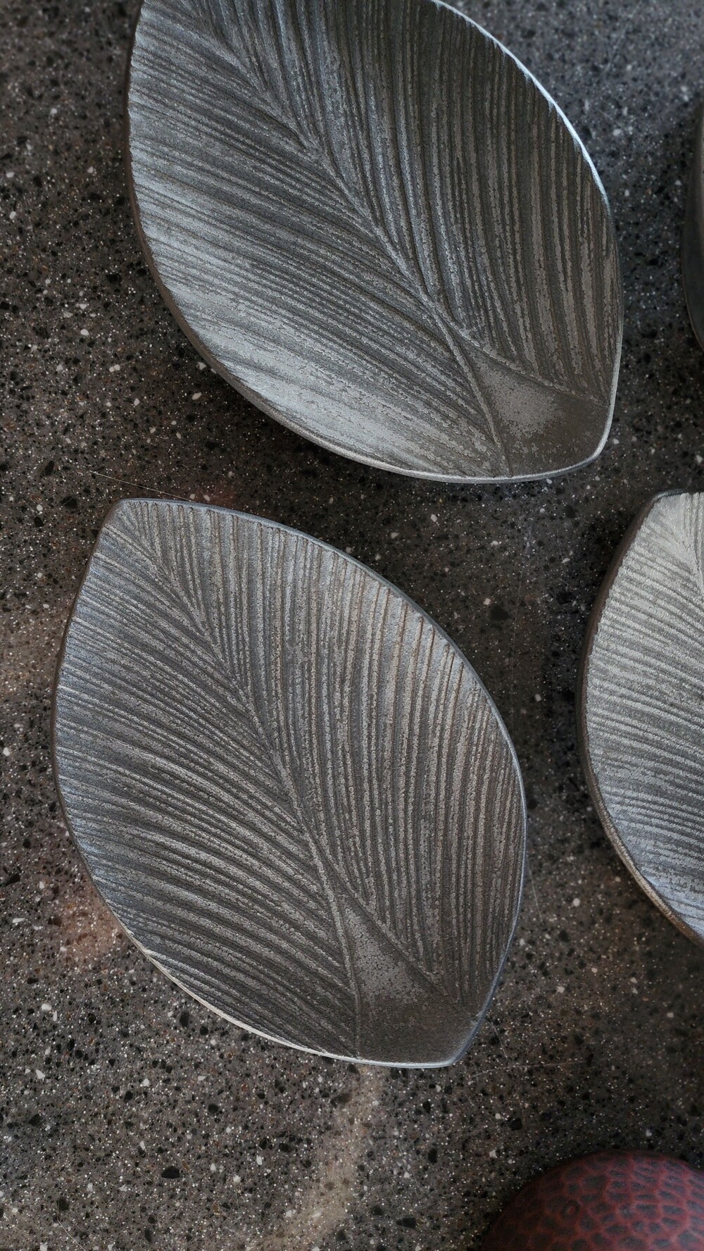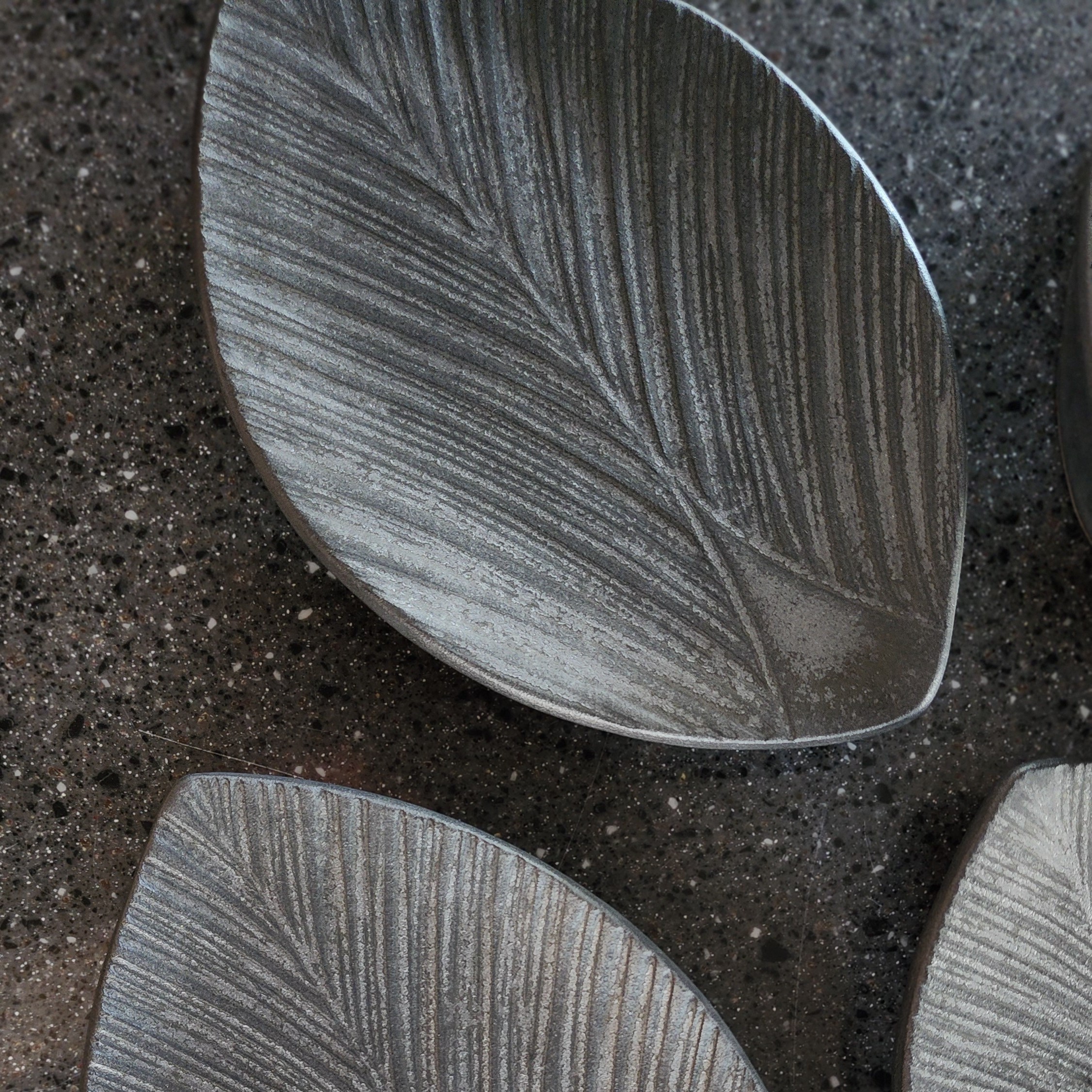 자연에서 영감을 받은 나뭇잎 형태의 도자 접시입니다.