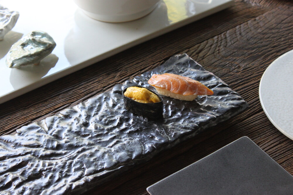 수작업으로 성형하여 접시마다 각각 다른 질감이 표현되었으며,