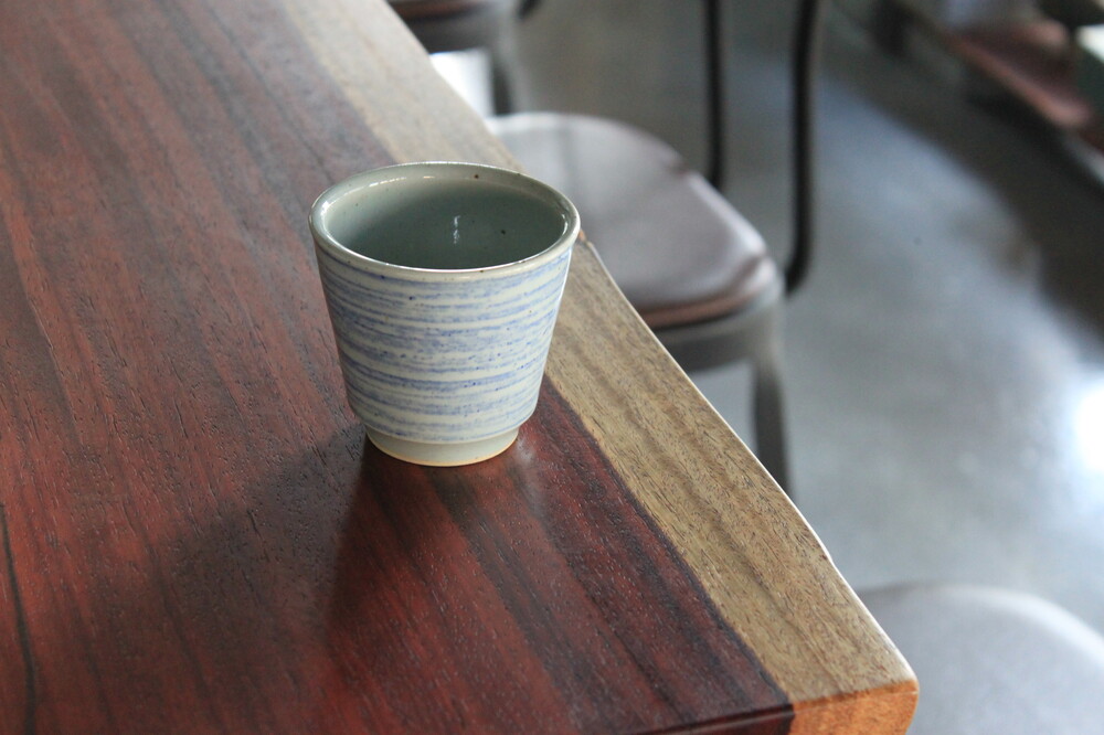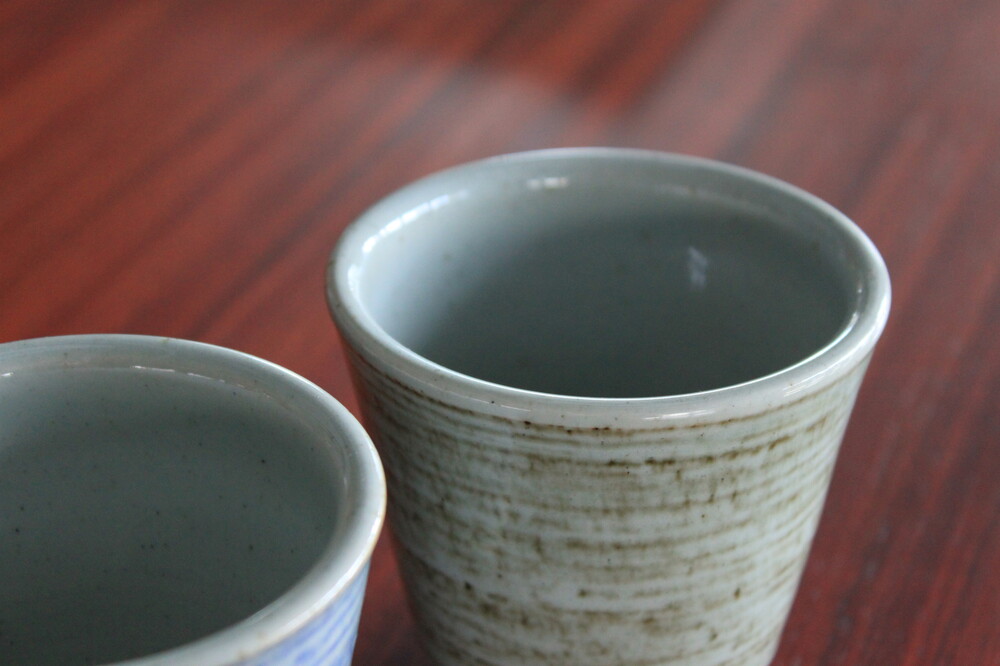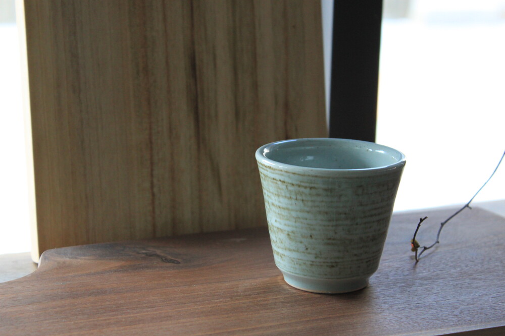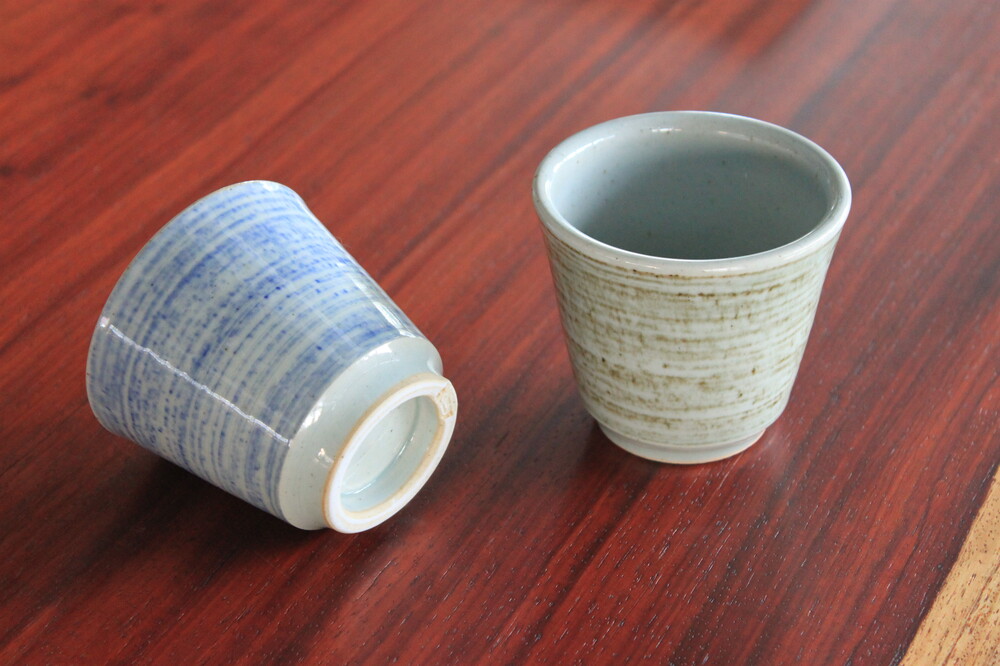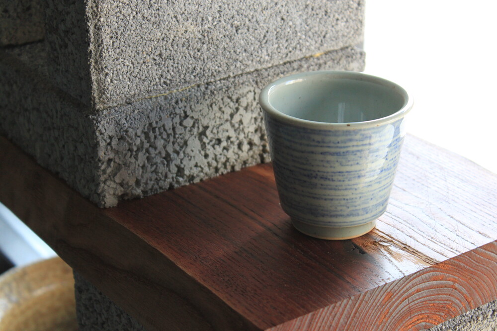 흙으로 만드는 수공예 도자기컵입니다, 컵 전체적으로 잔잔한 철분점이 보여집니다