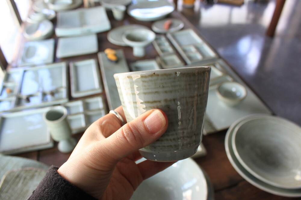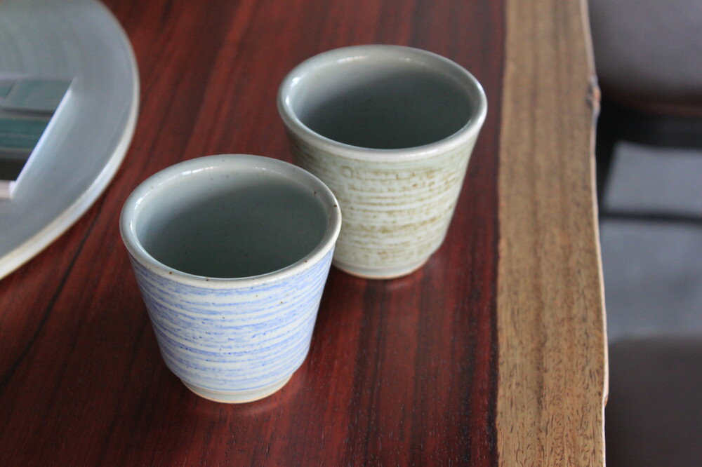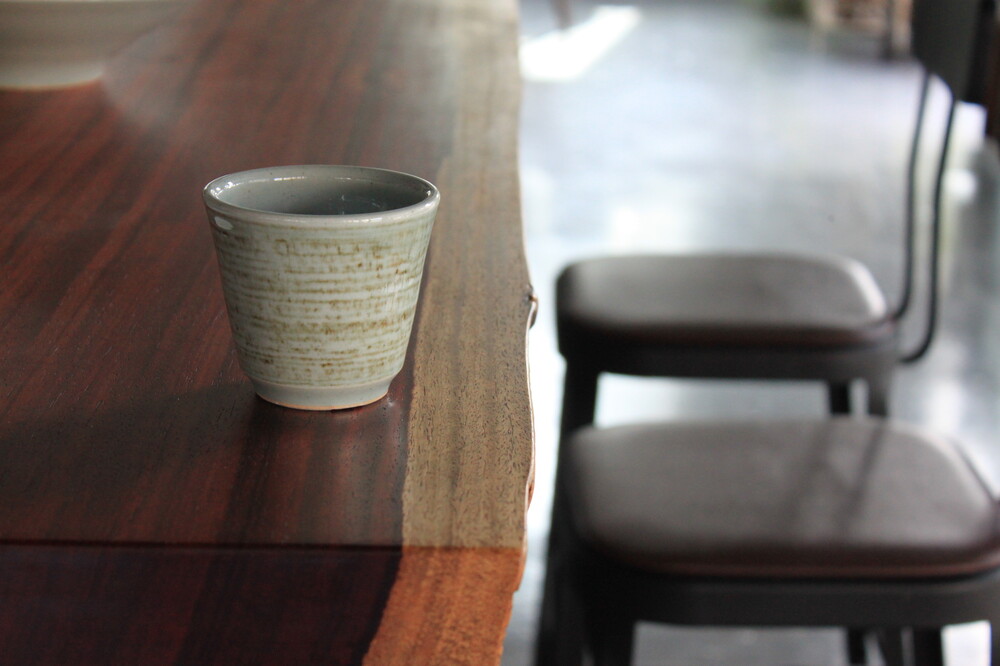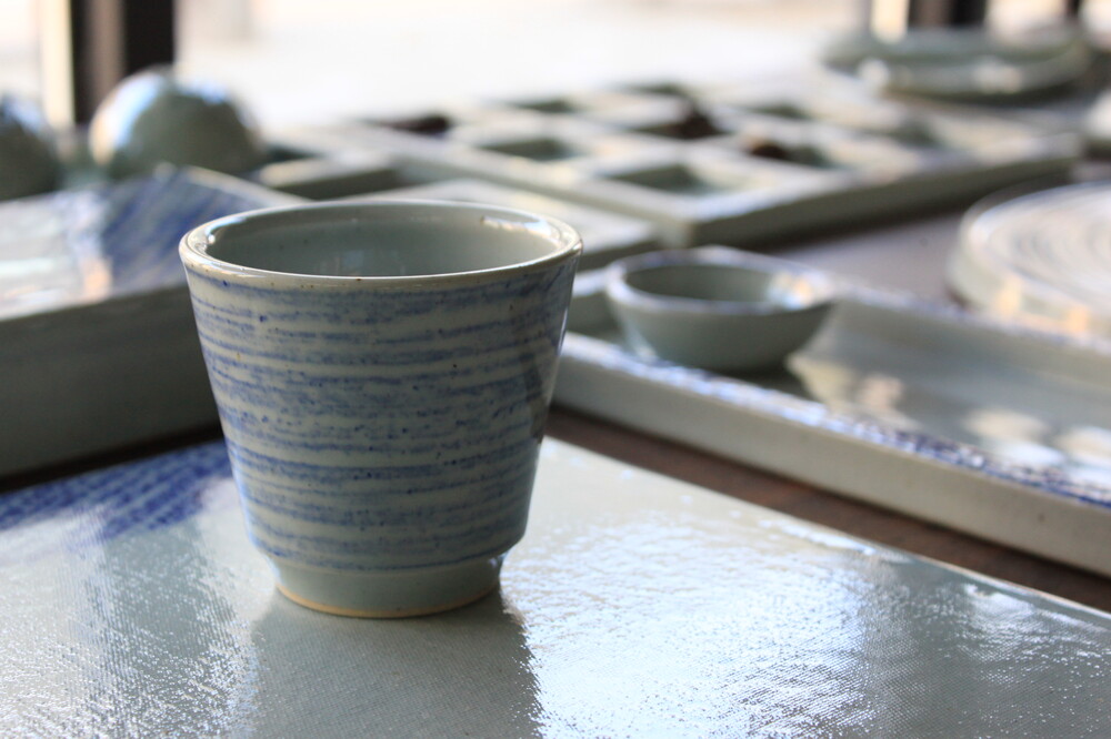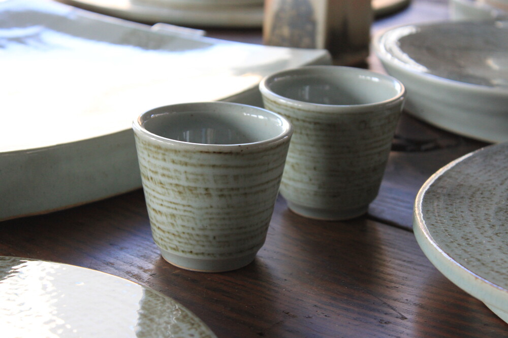 흙으로 만드는 수공예 도자기컵입니다, 컵 전체적으로 잔잔한 철분점이 보여집니다