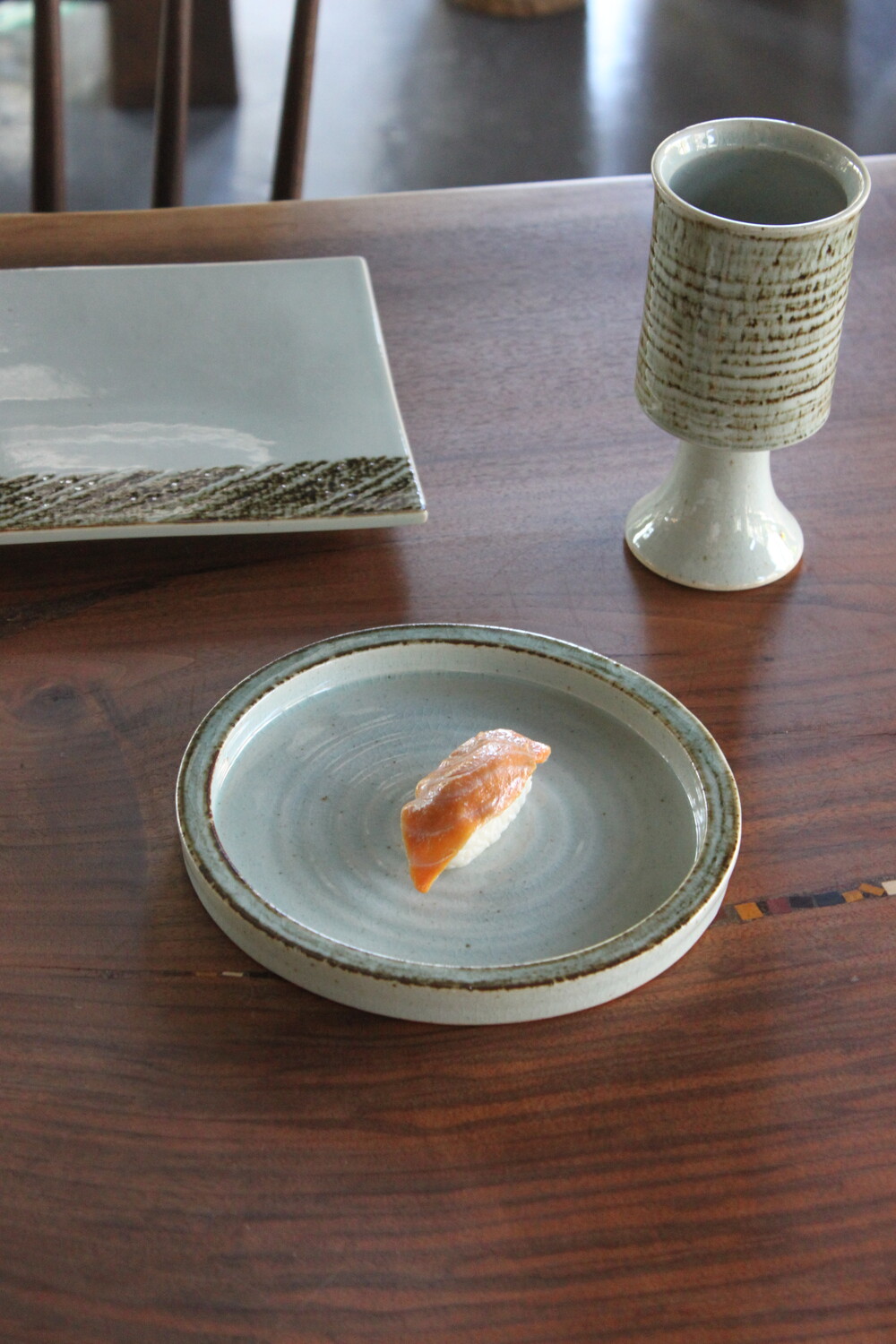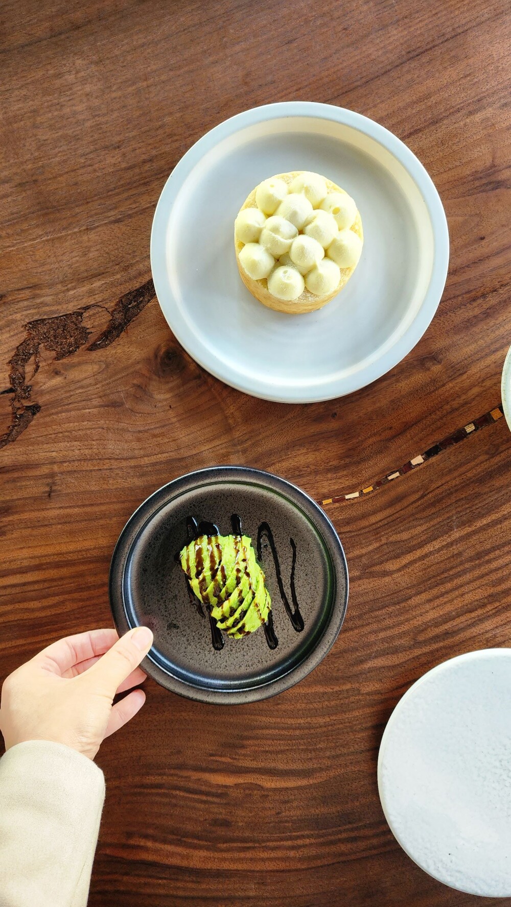 살짝 묵직한 쉐입의 수공예 접시입니다