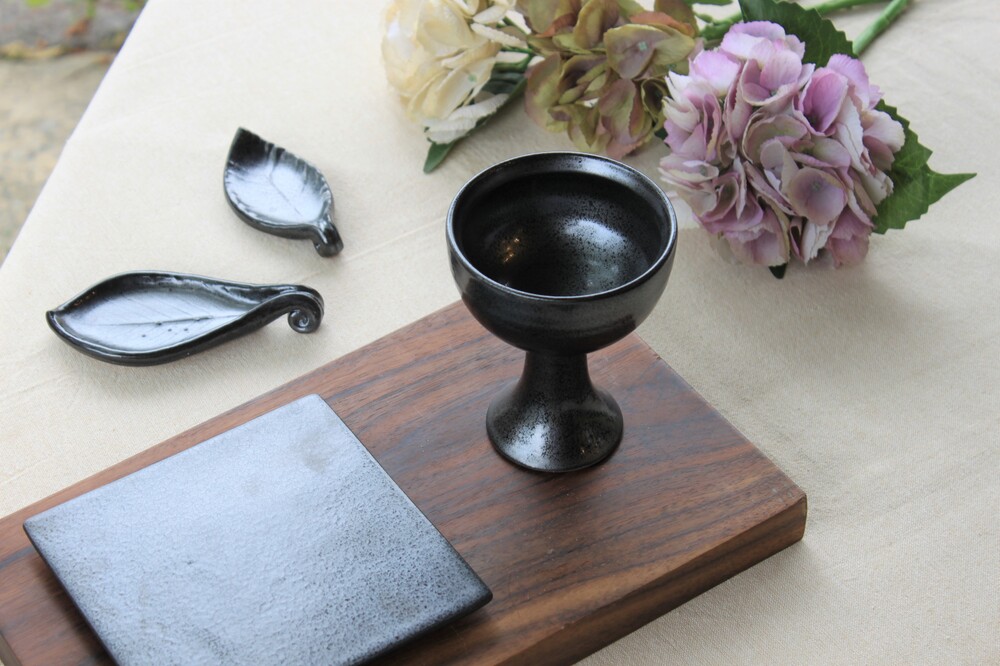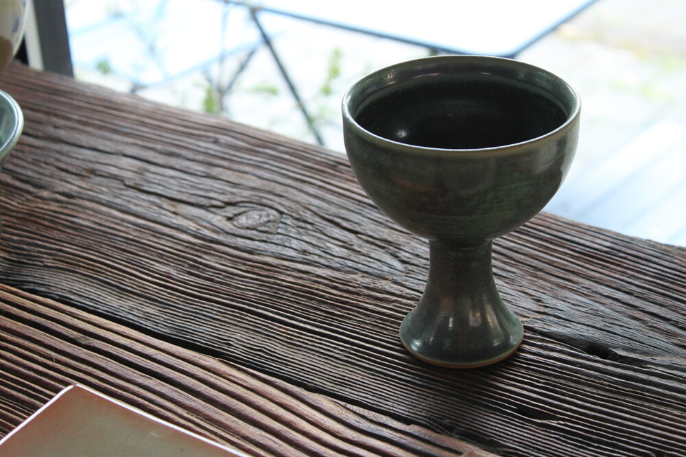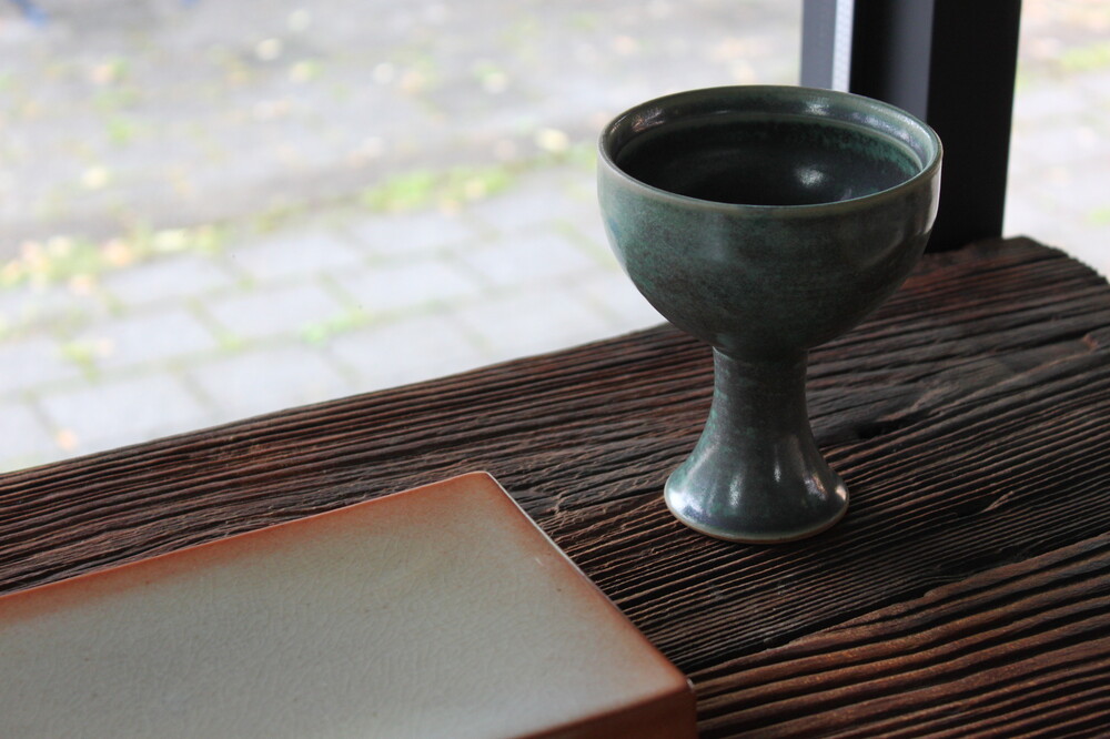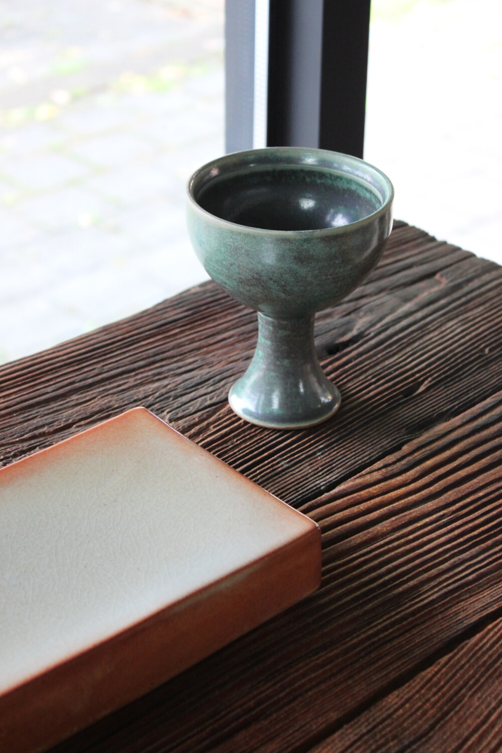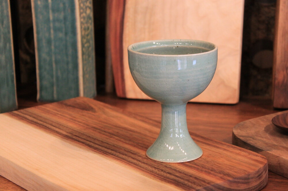 고급스러운 유약 컬러와 적당한 무게감의 수공예 고블렛 잔.