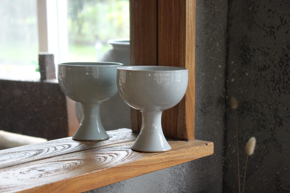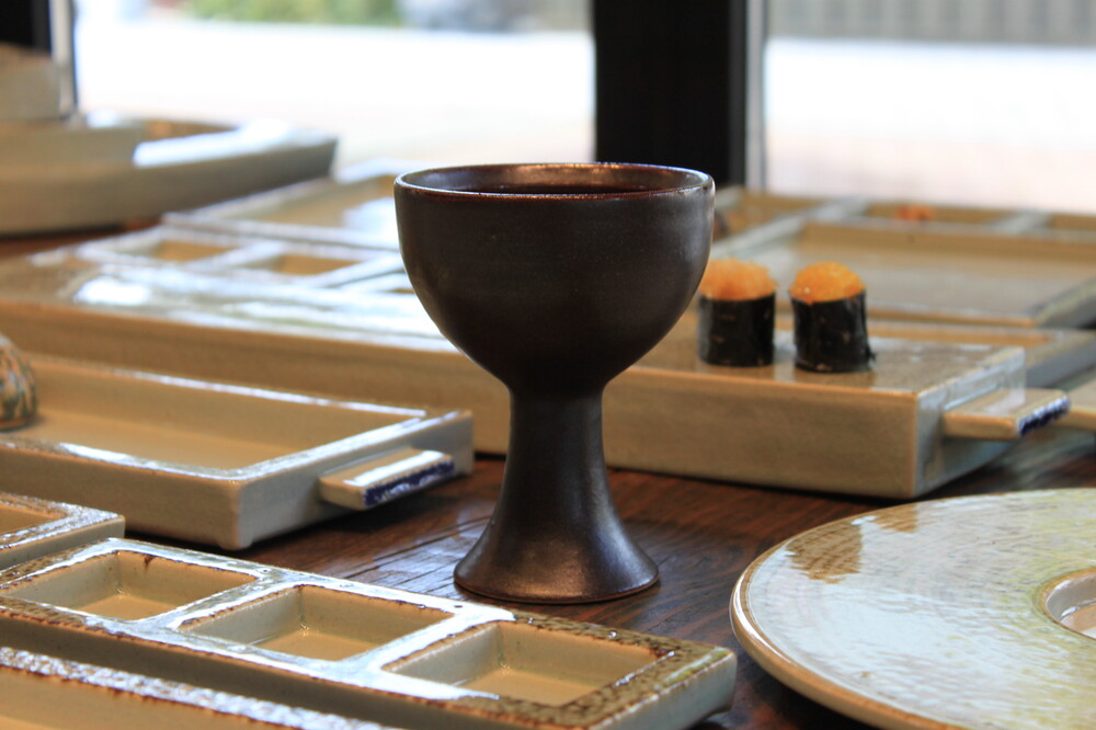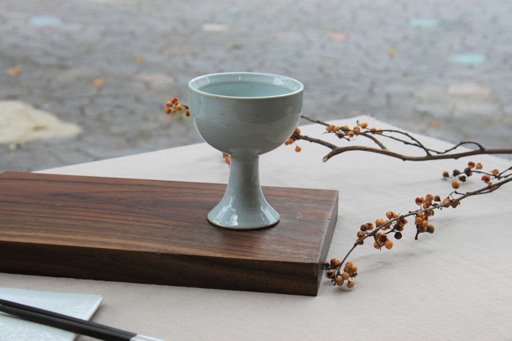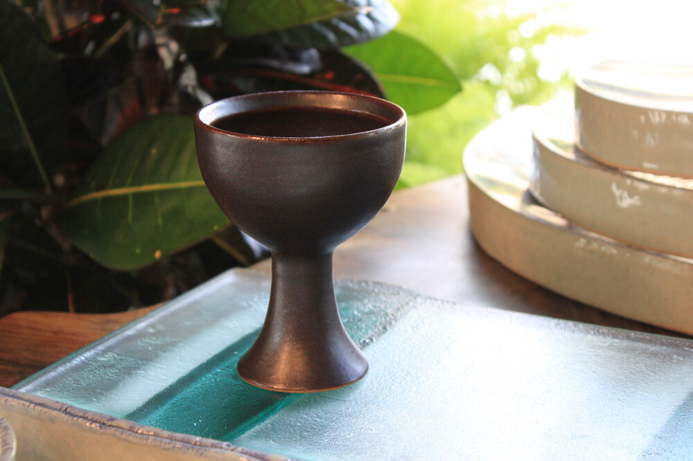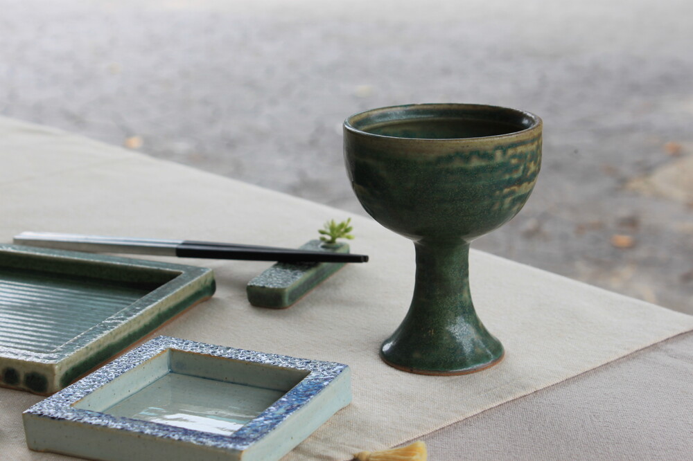 고급스러운 유약 컬러와 적당한 무게감의 수공예 고블렛 잔.