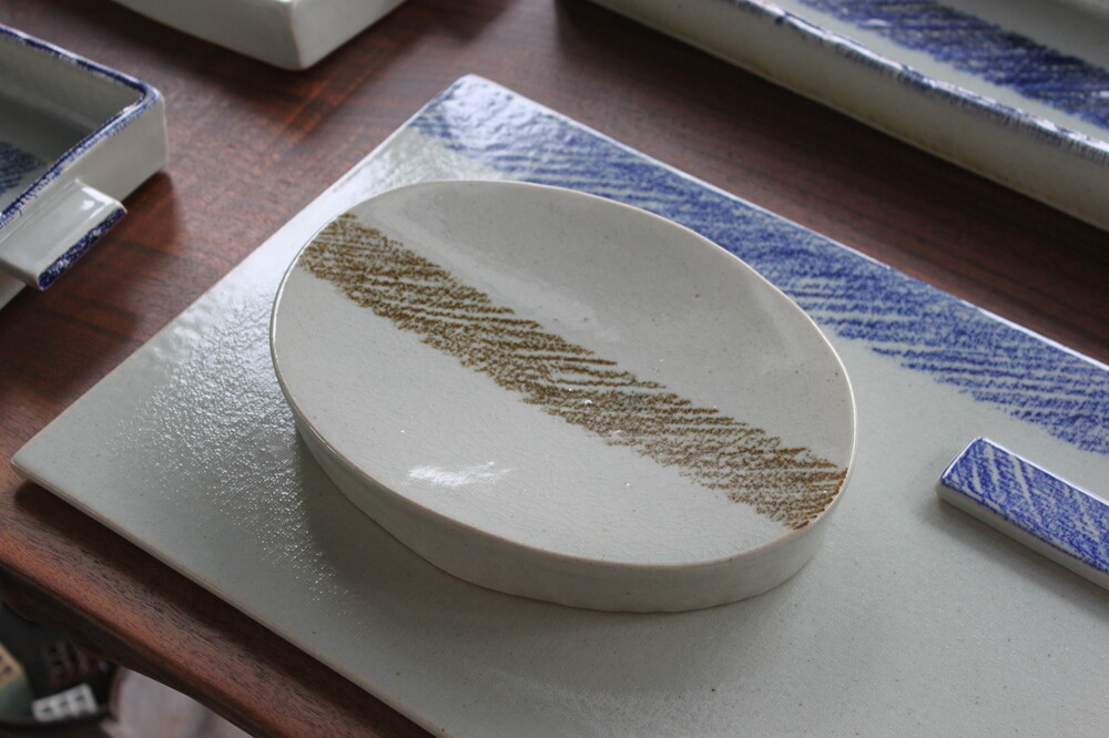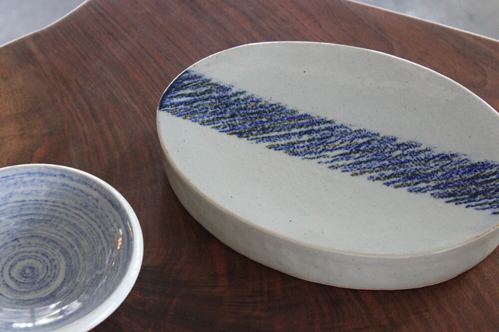접시마다 선의 흐름과 색의 농담이 일률적이지 않습니다