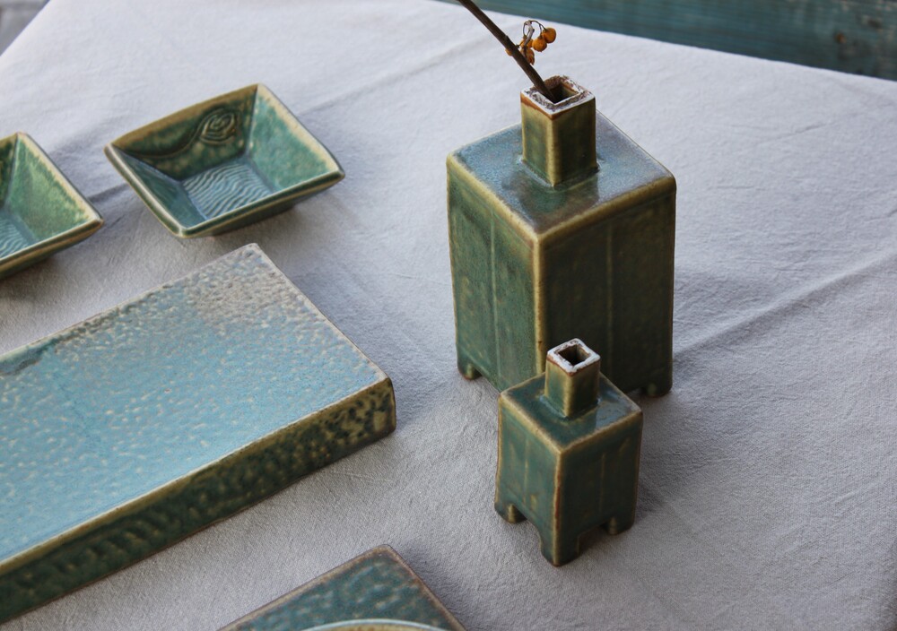 그린_유약의 변화가 많은 편으로, 베이지-그린-브라운색상이 자유롭게 오고가며, 색감이 일률적이지 않습니다